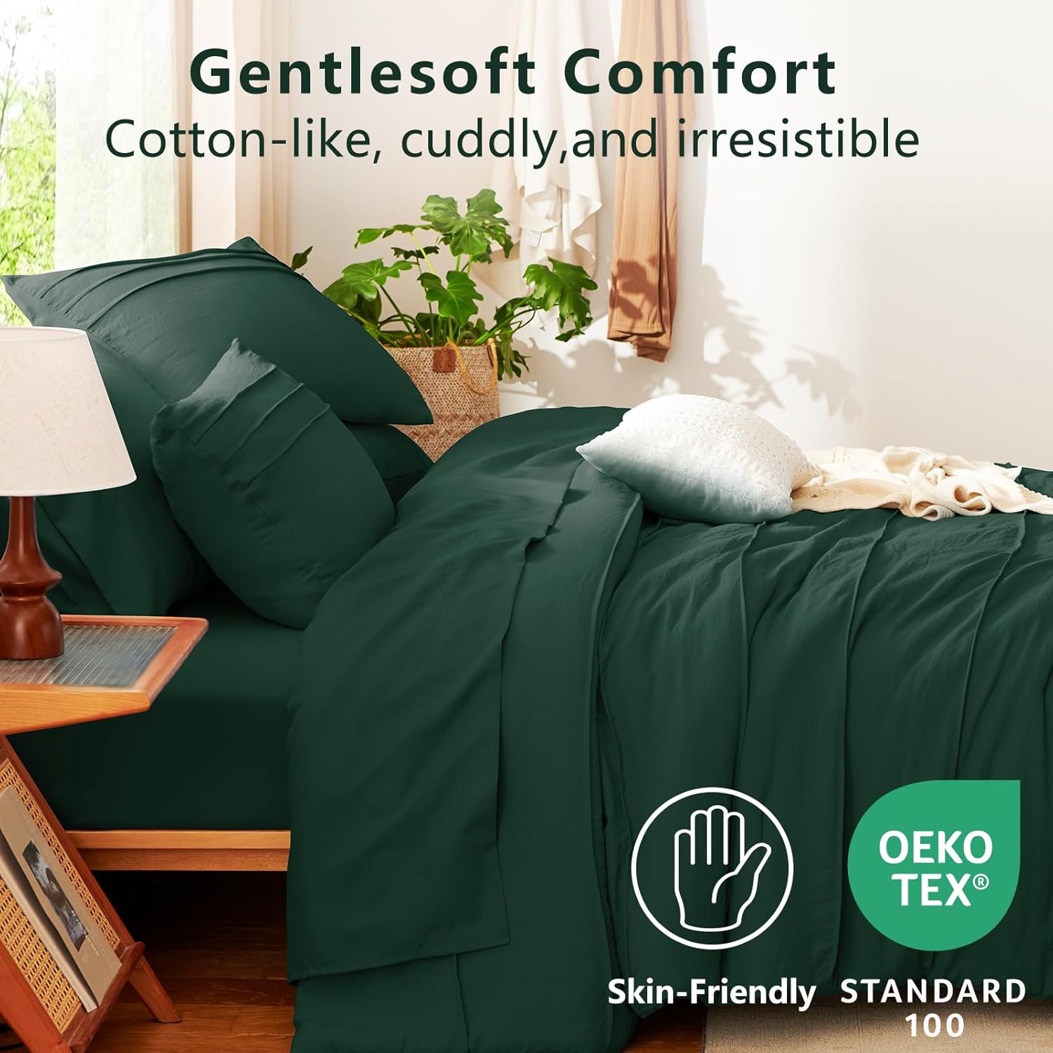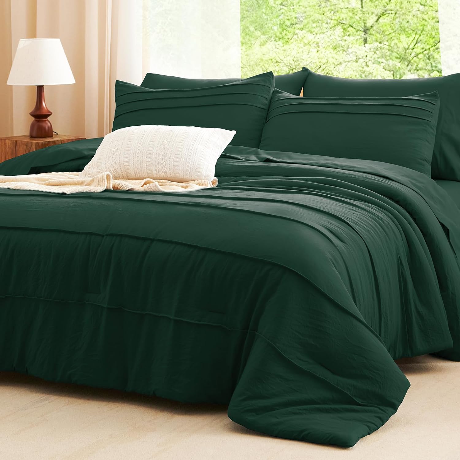 CozyLux King Size Comforter Set Emerald Green, 7 Pieces Soft Pinch Pleat Bed in a Bag King Comforter Set with Sheets, Bed Set with Down Alternative Comforter, Sheets, Pillowcases & Shams