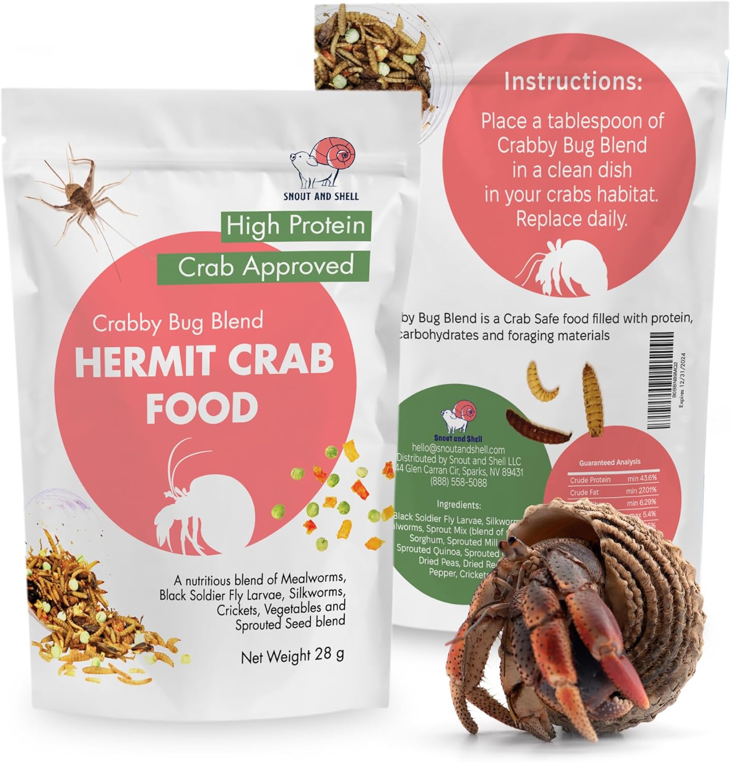Crabby Bug Blend Natural Hermit Crab Food – Crickets, Mealworms & Sprouted Veggies – 28g – Snout and Shell