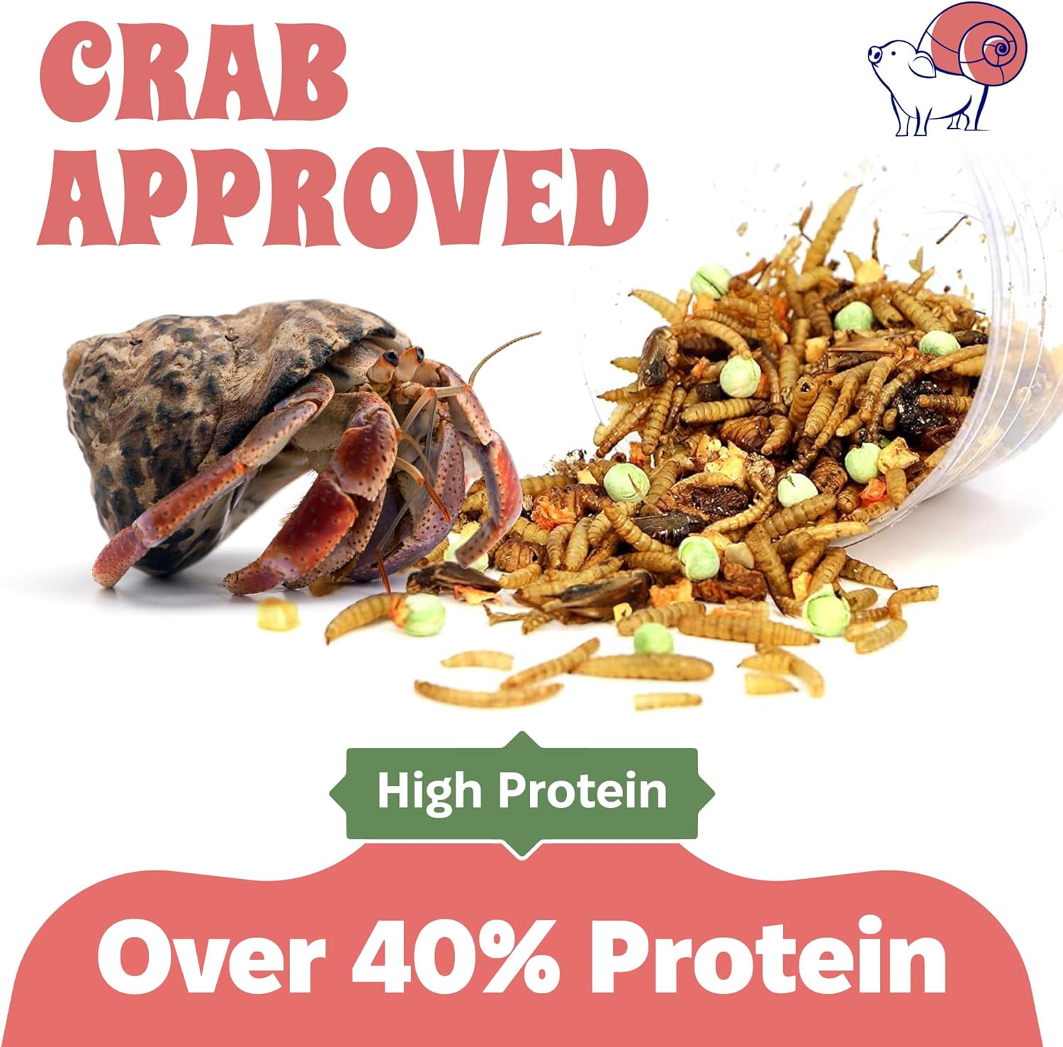 NATURAL INGREDIENTS: Every ingredient in our hermit crab food is simple and natural. A nutritious blend of mealworm, Black Soldier Fly Larvae, vegetables, Crickets, Sprouted seed blend mix with crab food. This crab food is very healthful for every kind of your crab because it is high protein source.