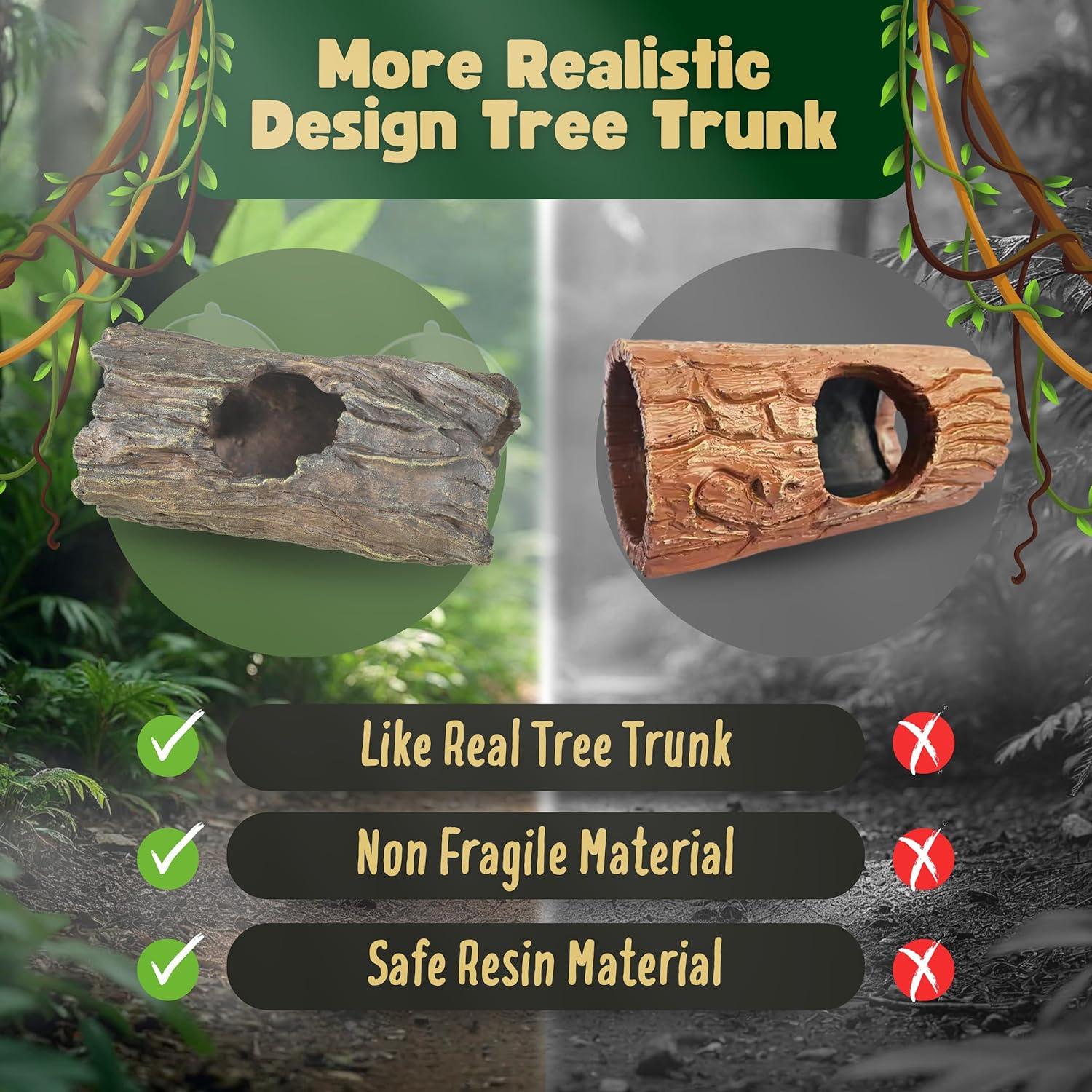 Reptile Decor: Elevate your reptile enclosure with our reptile decor that mimics a natural tree trunk. Suitable for PVC and glass terrariums, it serves as an enticing climbing decor for geckos and a functional basking platform.