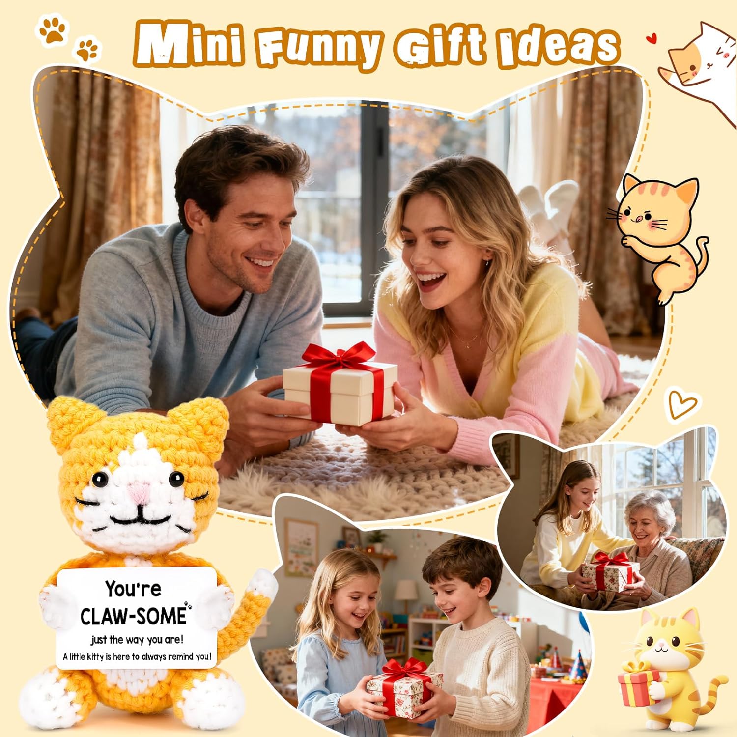Cat Gifts for Women Men: Little cat crochet doll small fun, are funny gag gift ideas; Creative and novelty, are personalized unique gifts for women men who have everything; As positive pals, cute kitty are great get well awesome inspirational gifts
