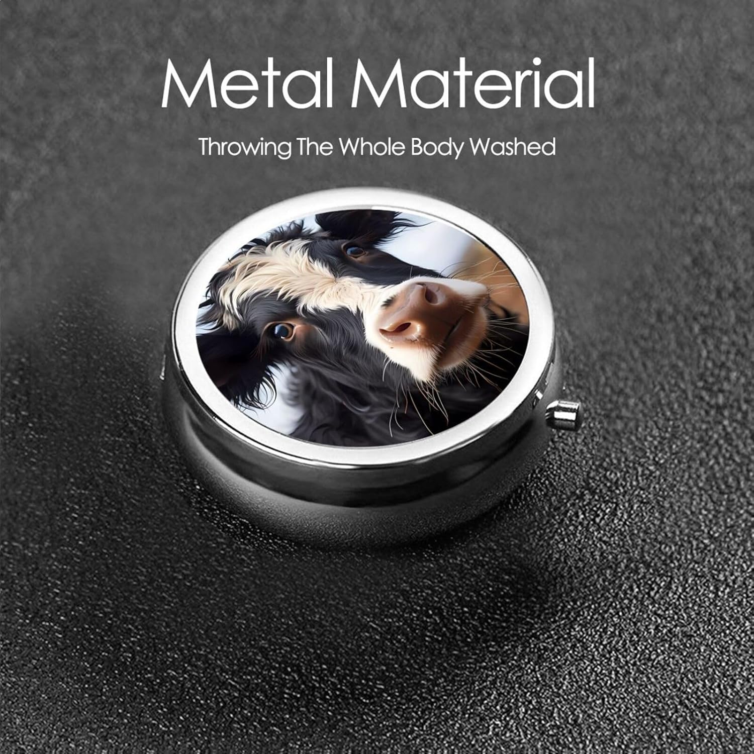 Cute Cow Stay organized and stylish with this Round Pill Box – a portable medicine storage container perfect for vitamins, supplements, fish oil, and more. Designed with a full-print exterior, this pill box is not just functional but also a fashionable addition to your daily routine. Made from durable electroplated metal iron, it offers a premium feel and long-lasting performance.