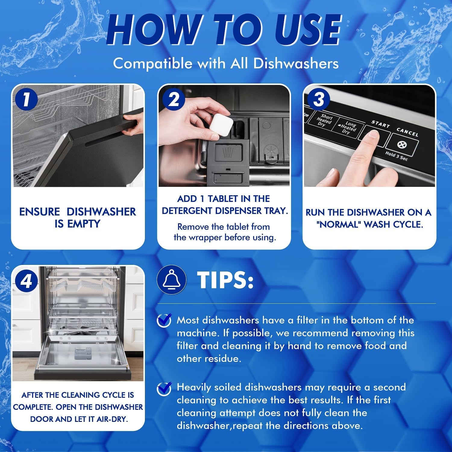 Protect your $$$ investment! Monthly dish washer cleaner tablets prevent clogs + damage. Extend lifespan 2X! Just 1 tablet in an empty cycle = peak performance forever.