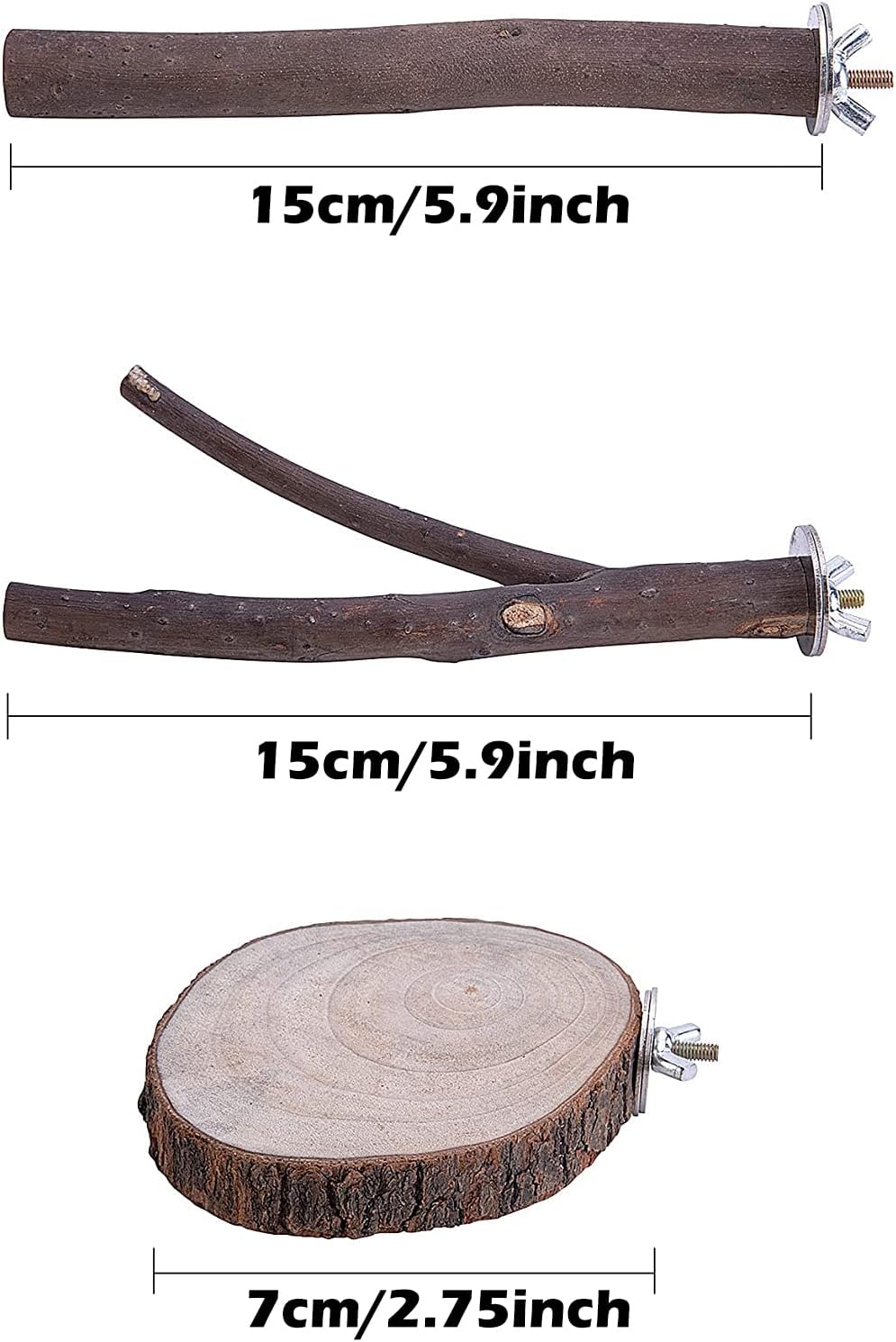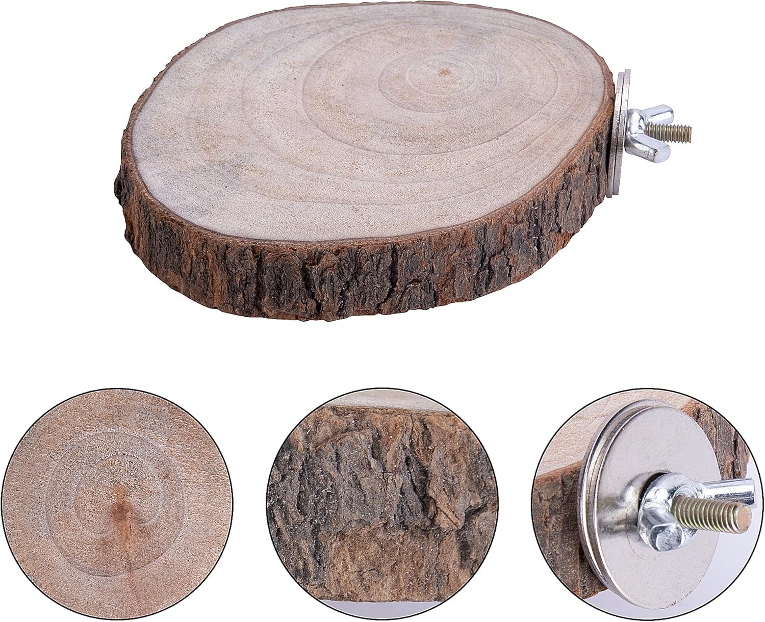 Suitable size:Our wooden parrot perch stand sizes are 6.49 inch,bird wooden stand platform measure about 6.49 inch.Perfect size and enough space provides a enjoyable habitat for parrots in cage when they stand or have a rest on it.