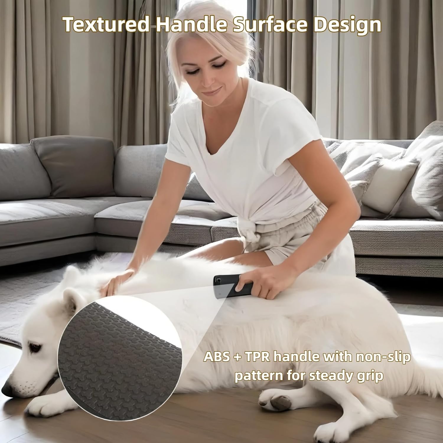 Easy-Hold Handle with Textured Grip: Our pet deshedding tool has a hard plastic handle featuring raised T-shaped texture for reliable control. Enjoy steady handling during grooming sessions indoors or outdoors
