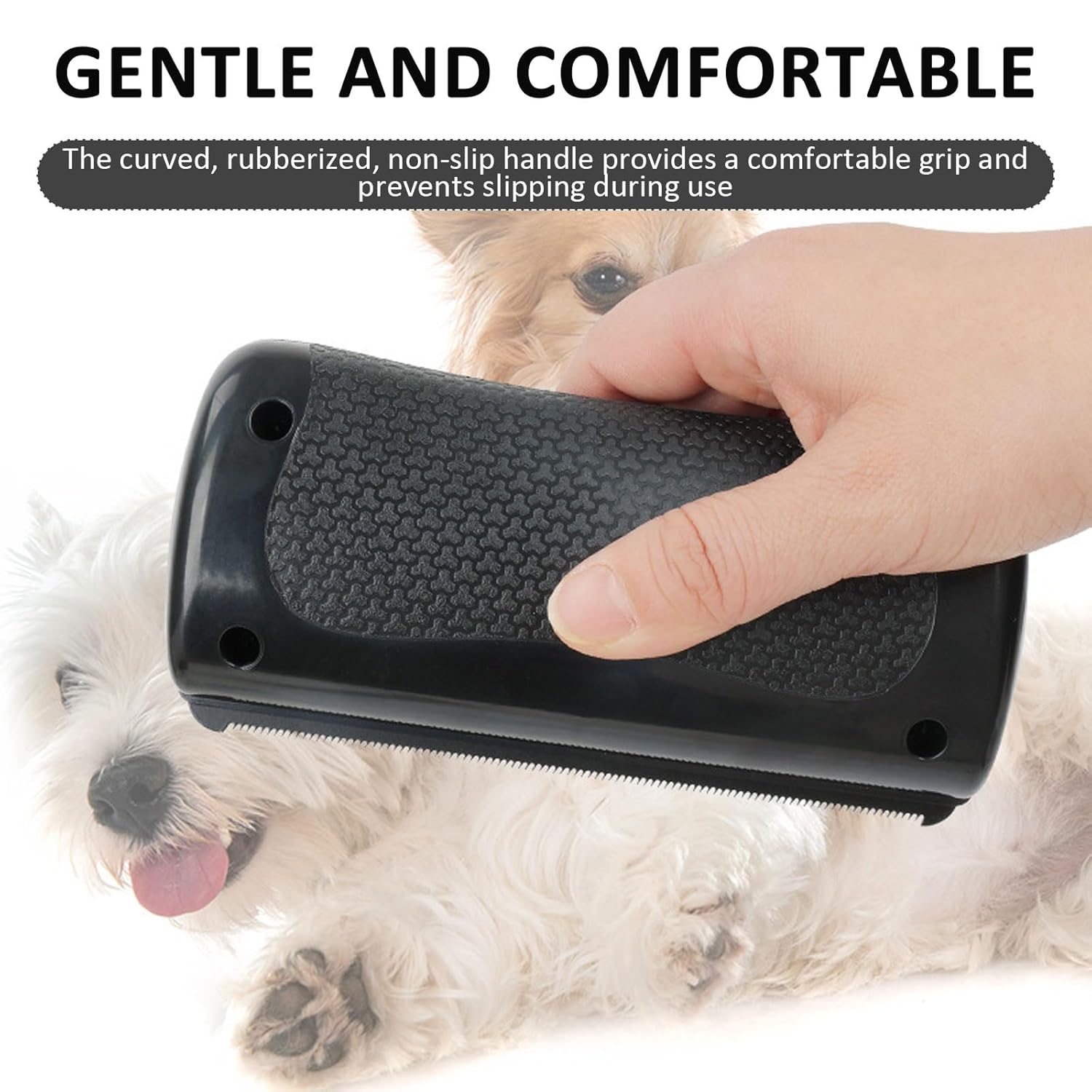 【Comfortable Grip】 The handheld design fits snugly in your hand, providing an ergonomic grip and a secure, precise combing experience. You can easily reach every part of your pet’s coat, even with minimal fatigue during extended use