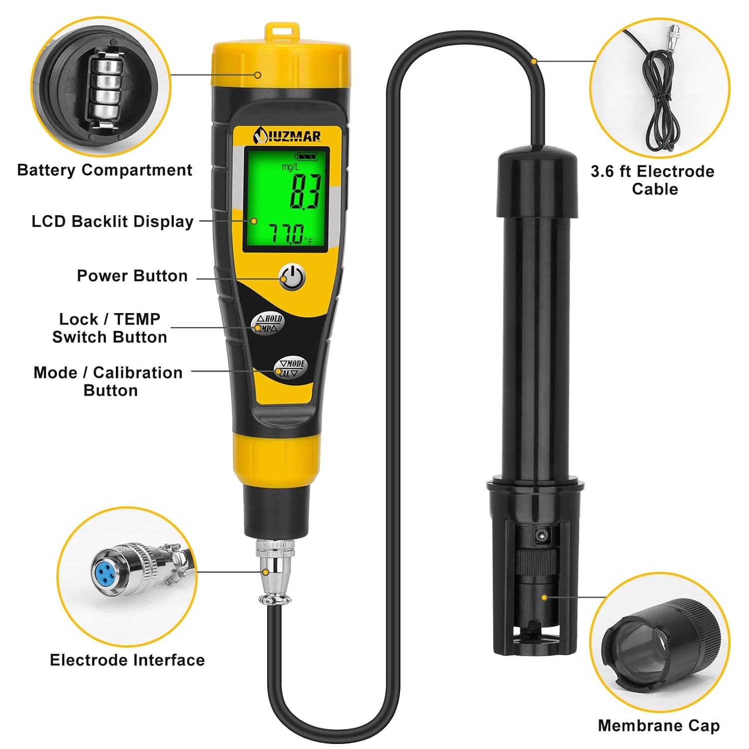 DO Meter with Accessory Kit: The UIUZMAR Dissolved Oxygen Meter Kit includes 6 spare membrane caps for regular maintenance, along with two bottles of electrolyte and a bottle of zero-oxygen calibration solution. Never worry about running out of essential accessories—additional kits are available for purchase from the UIUZMAR store, ensuring a hassle-free shopping experience.