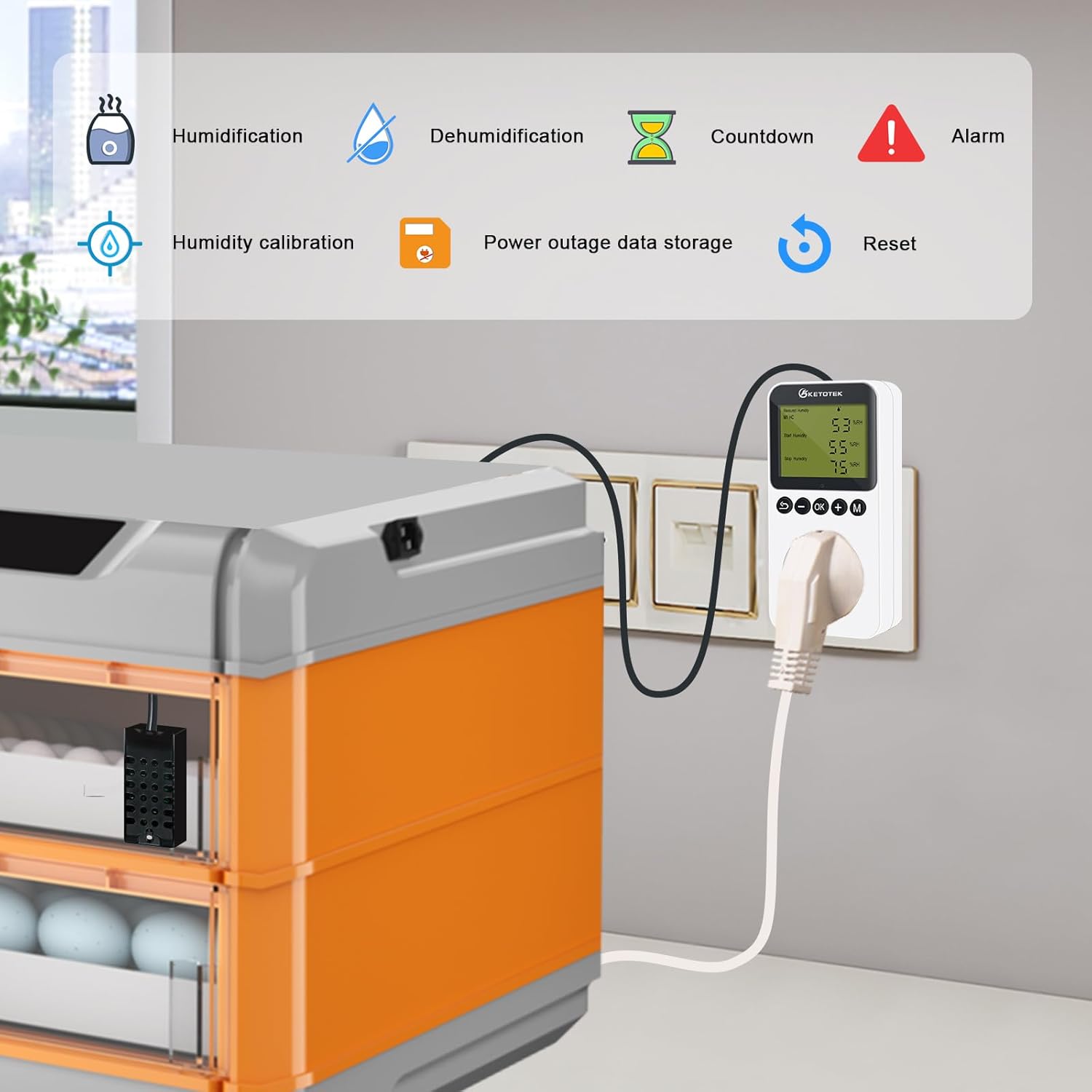 【Plug-and-Play Design】The humidity controller is easy to use, just plug into your devices and set the target humidity to work.