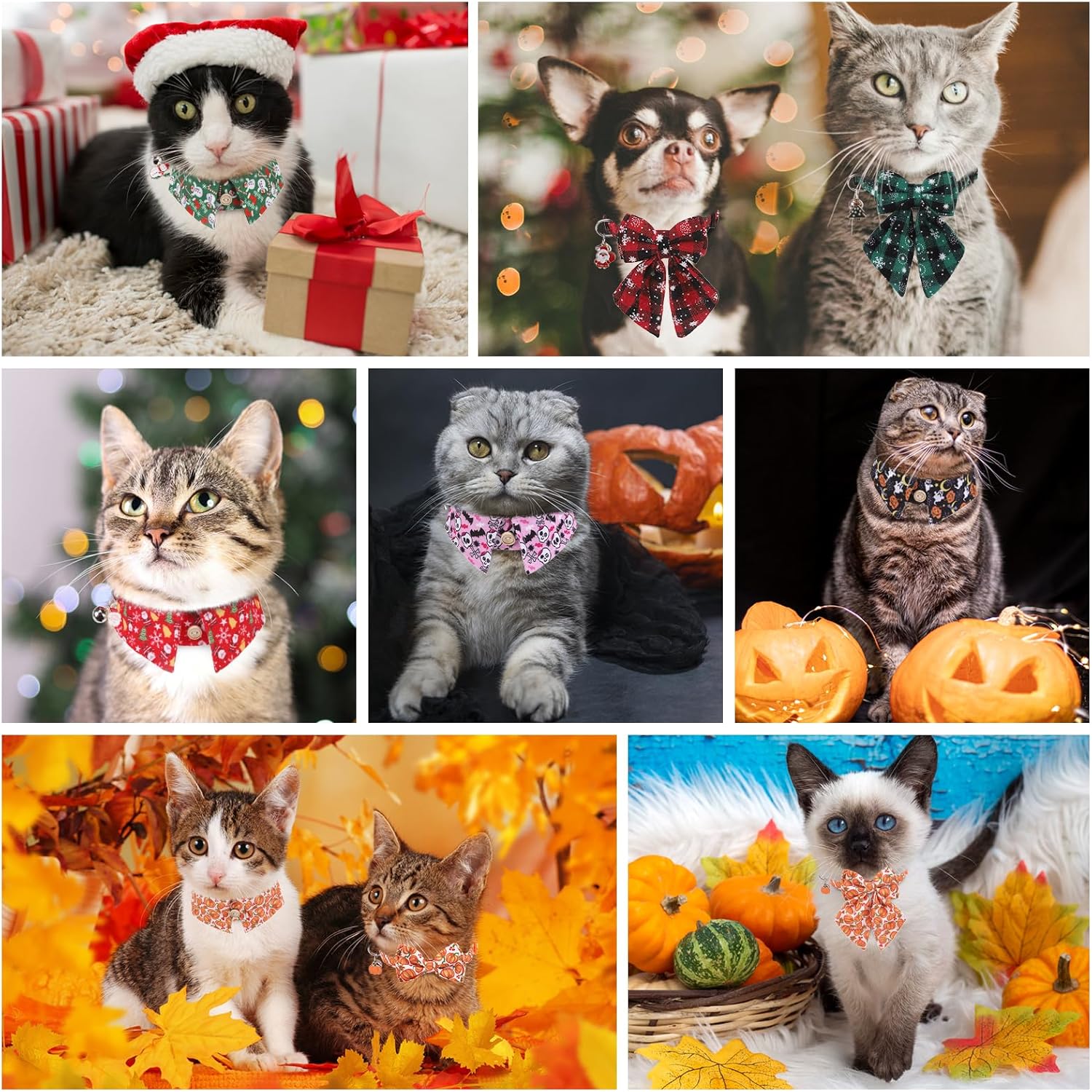 HIGH QUALITY : Our cute cat collar is made of polyester fabric with fine stitching, lightweight and durable, providing a comfortable fit for your cat. Give your cat a stylish and festive look with our Christmas cat collars. Ideal for Christmas parties, photo shoots, costume dress-up, or daily wear. The perfect accessory for any cat lover.