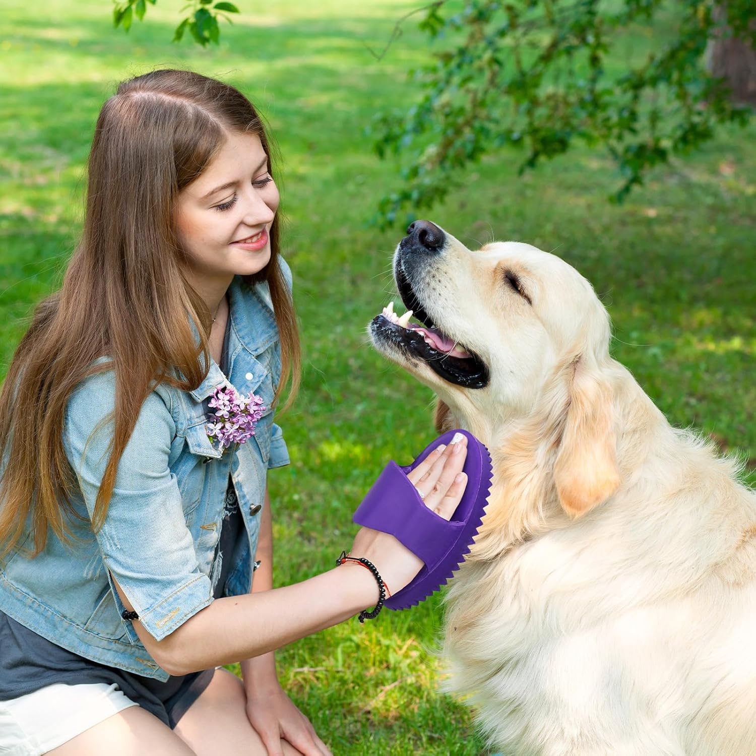 There are not enough stars. I’m so glad they come in a multi-pack. We have a red healer and he sheds. Boy does he shed. I put one on each hand and my gosh did the hair fly (I did this outside). Since the nubs are short it never loaded up. They are very flexible. Our dog loved it.