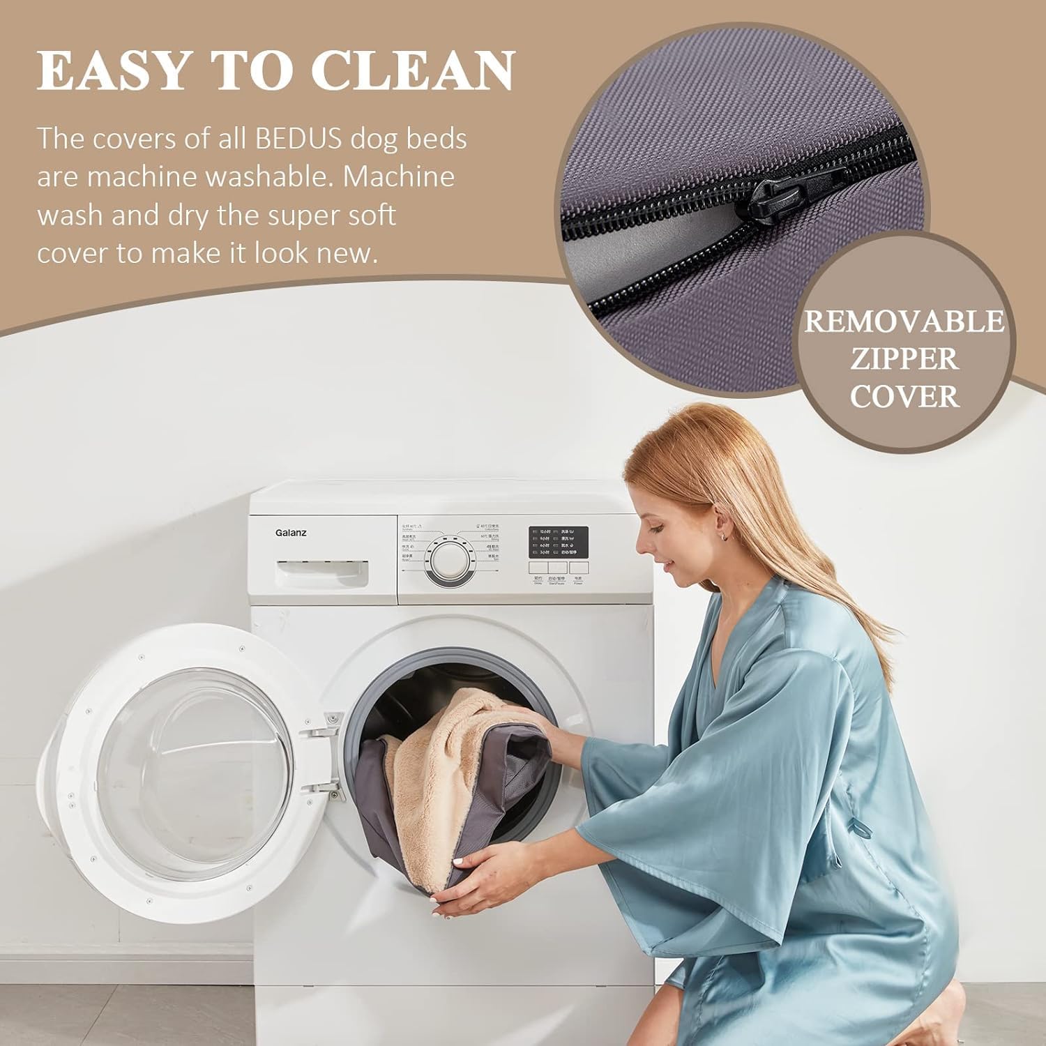 【Easy Maintenance & Long-Lasting Durability】The orthopedic dog bed features a removable, machine-washable synthetic cover for hassle-free cleaning. Easily spot clean and remove hair for a pristine look. The zipper design ensures reloading the base and bolster is a breeze. Neat and strong sewing guarantees the bed’s longevity, providing your pet with a reliable and durable resting place.