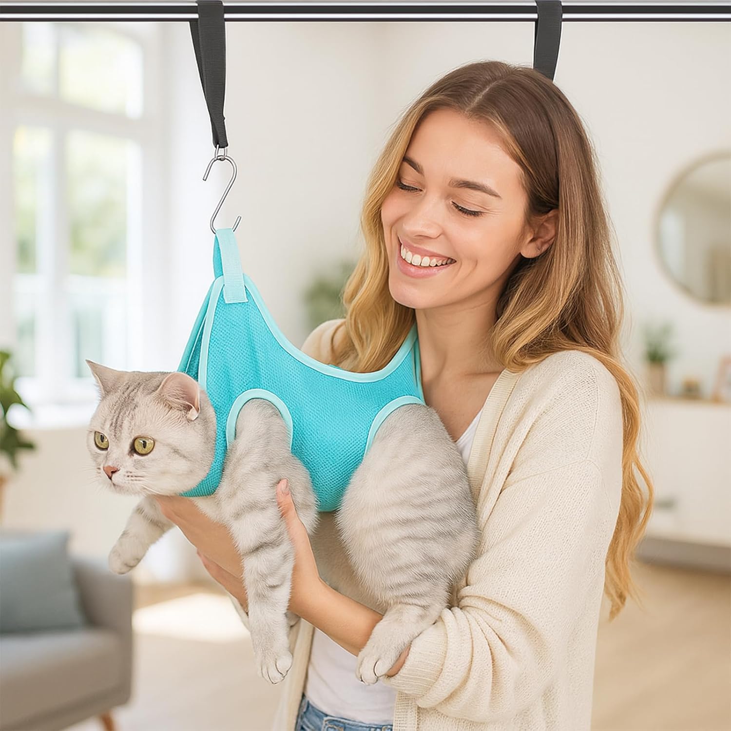 Easy Home Grooming – The grooming hammock makes nail trimming, bathing, hair brushing, and ear/eye care simple and stress-free at home.