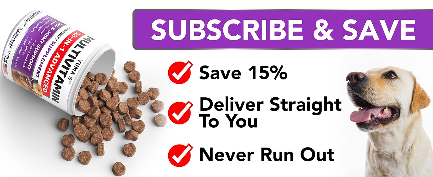 Advanced Hip & Joint Care: Fortified with glucosamine, our dog vitamins provide critical hip and joint support to reduce inflammation and enhance flexibility for a happier, more active dog