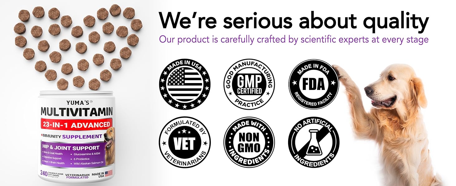 Veterinarian Formulated & USA Made: Trust in the premium quality of our dog vitamins for small dogs, which are formulated by veterinarians and manufactured in the USA within an FDA-registered facility that adheres to the strictest quality standards