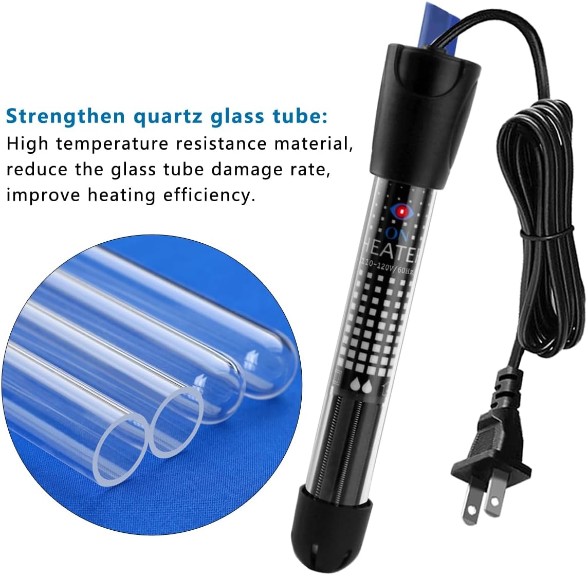 【Safety & Blast Resistant】2mm thickened quartz glass, 33% thicker than the normal, safer for both human and pet, heater can be used in fresh water and salt water aquariums,easy to hide in the tank