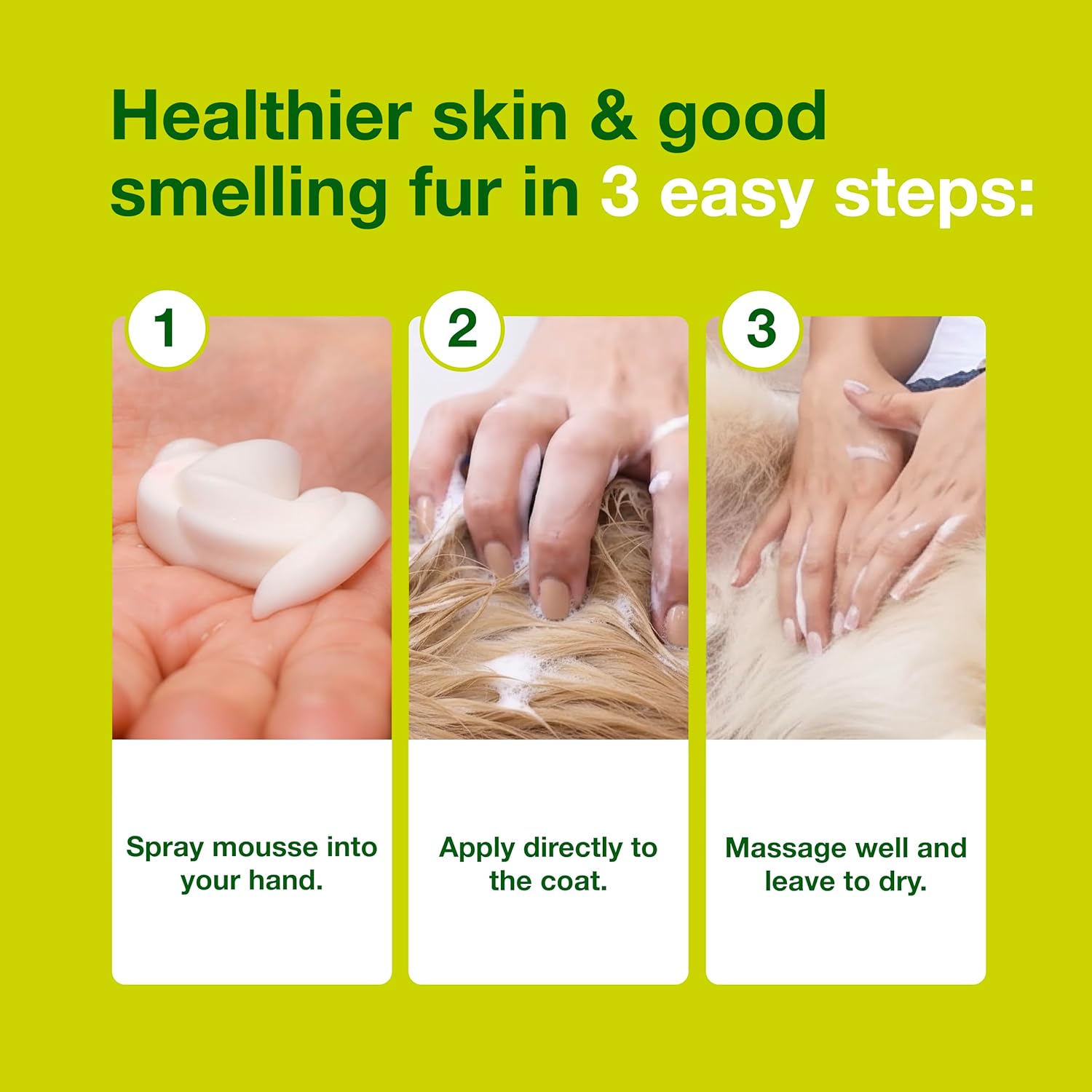 This mousse is great for my dog who has some hair loss due to an autoimmune disease that makes his skin scaley. Easy to apply and it smells so good! I use it between shampoos. My dermatology veterinarian recommended these products to go along with medications my dog is receiving for his problem.