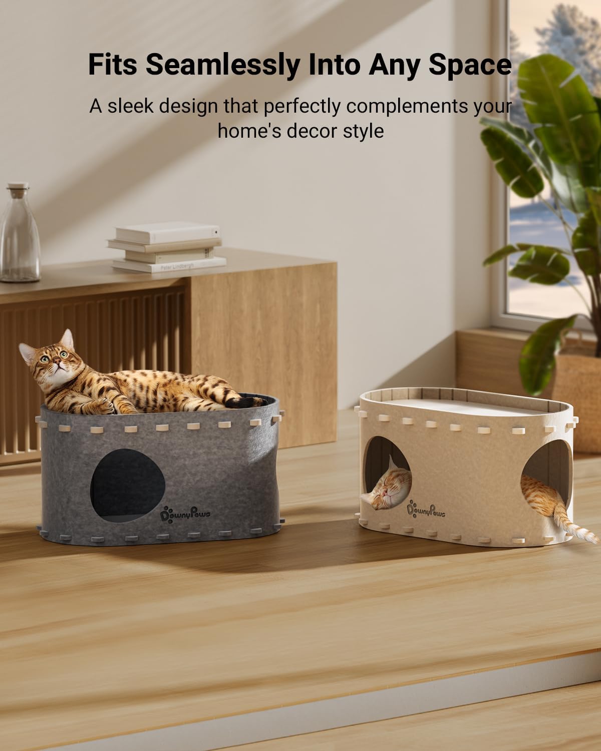 Fits Seamlessly Into Any Space: The PeekaPurr Modern Cat Bed Cave boasts a chic design that effortlessly blends with any home decor. With color options in light gray and cream, it provides versatile choices to harmonize with various interior styles, ensuring your cat’s haven aligns perfectly with your home’s aesthetic