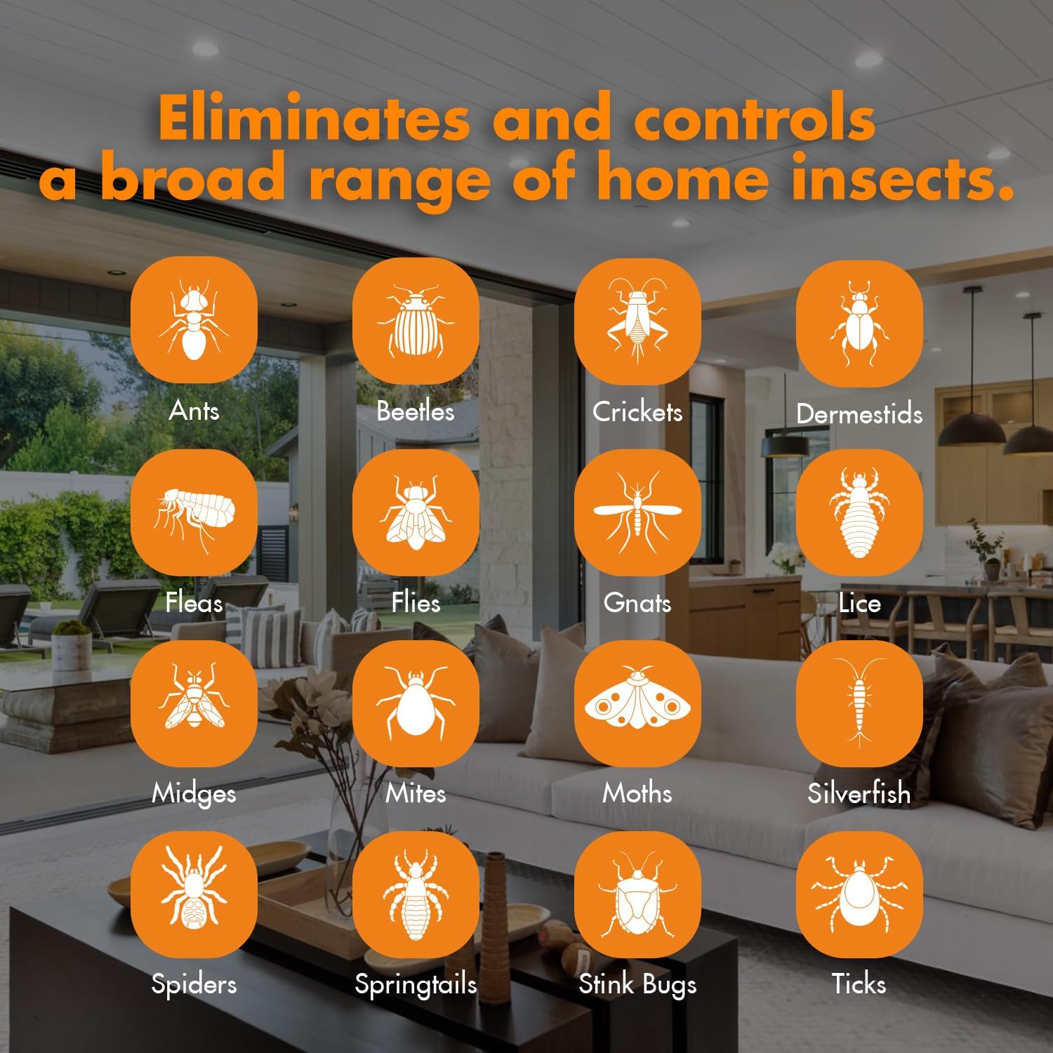 Kills Common Household Pests Fast: Natural insect spray that eliminates ants, beetles, dermestids, fleas, flies, fruit flies, gnats, lice, midges, mites, moths, roaches, silverfish, spiders, springtails, stink bugs, ticks, and other insects on contact. Delivers fast and visible results for immediate relief.