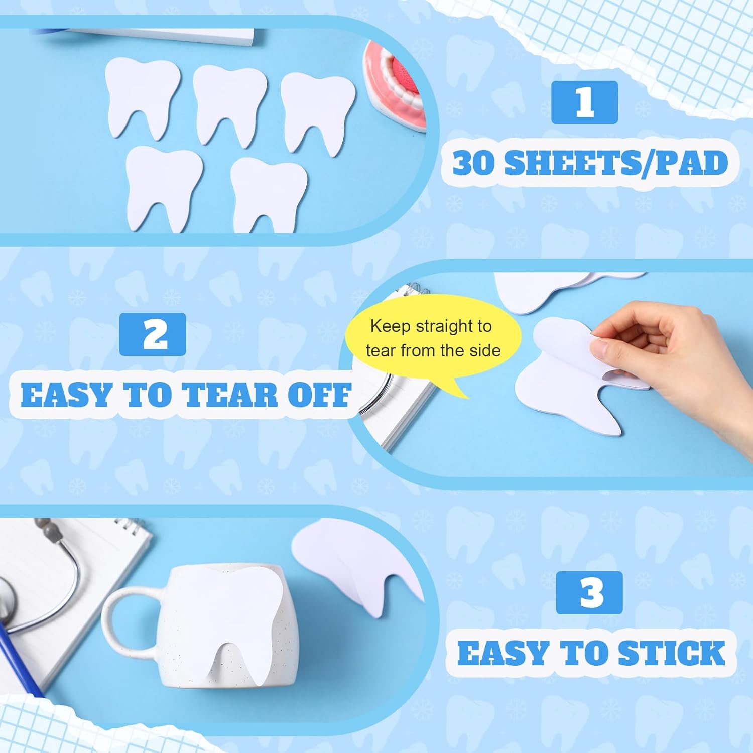 Eersida 24pcs Tooth Sticky Notes Self Adhesive White Teeth Shapes Sticky Notepads Teeth Healthy Hygiene National Dentists Day Craft for Office Classroom Party Bulletin Board Wall Chalkboard Home Decor