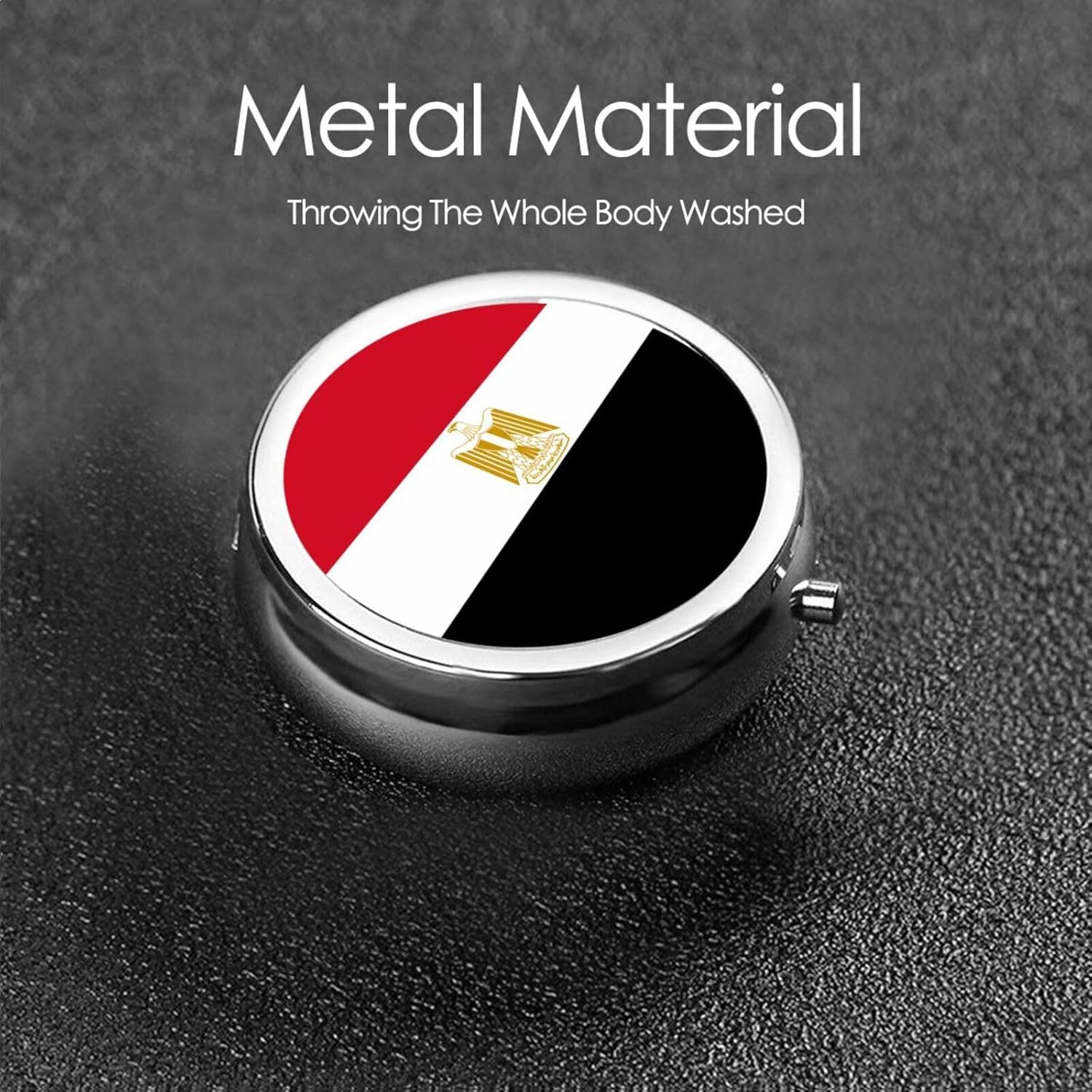 Egyptian flag Stay organized and stylish with this Round Pill Box – a portable medicine storage container perfect for vitamins, supplements, fish oil, and more. Designed with a full-print exterior, this pill box is not just functional but also a fashionable addition to your daily routine. Made from durable electroplated metal iron, it offers a premium feel and long-lasting performance.