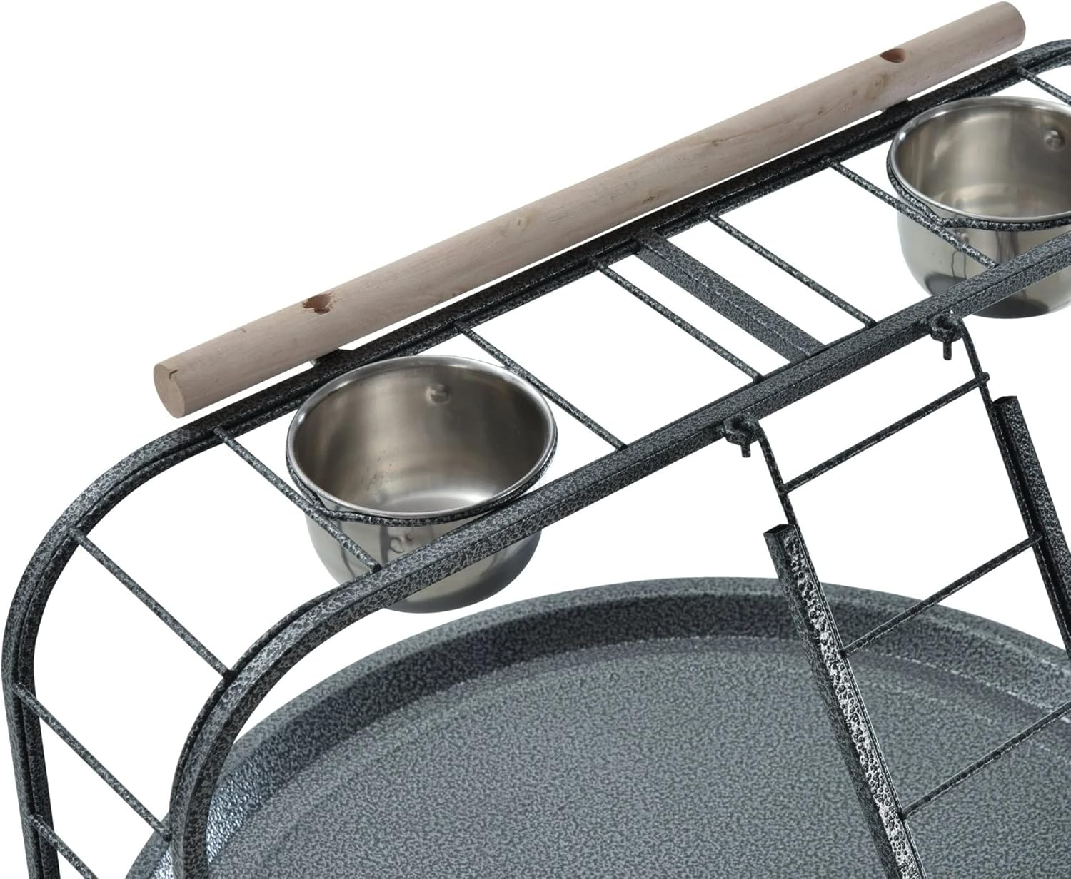 【Long Lasting Removable Metal Pan 】Include 2 Stainless Steel Feeder Bowls, Strong Metal Play Ladders, Natrual Standing Wooden Perch, Toy hook included.