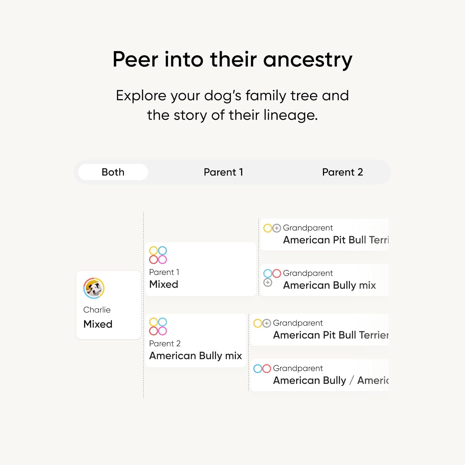 See how your dog’s parents, grandparents, and great-grandparents contributed to their breed makeup.