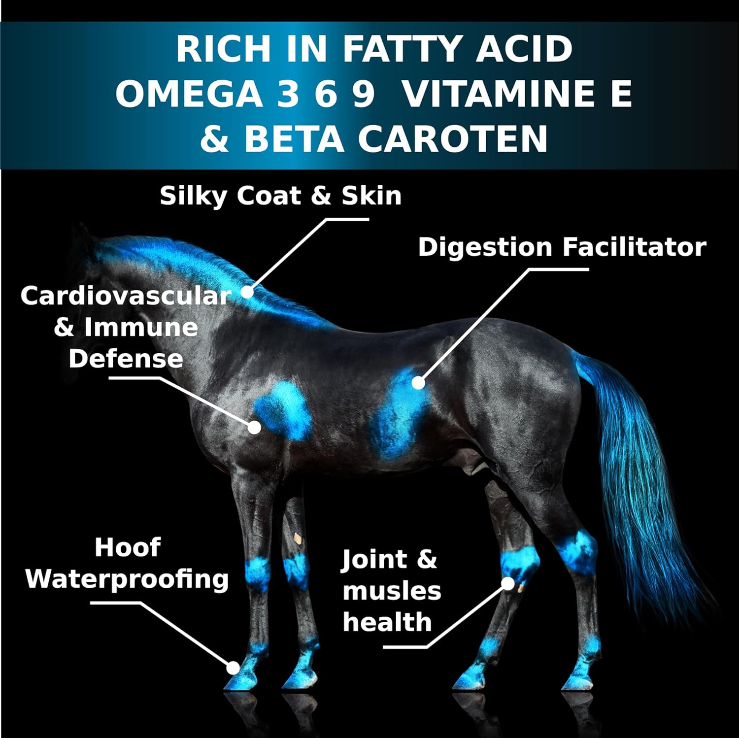 Great health benefits : Rich in Fatty Acid, Omega 369 and Vitamin E, Beta Carotene, our food product will offer your pets many benefits : Coat defense, silky skin and hoof waterproofing, digestion facilitator, Joint and musles health, Cardiovascular and immune defense