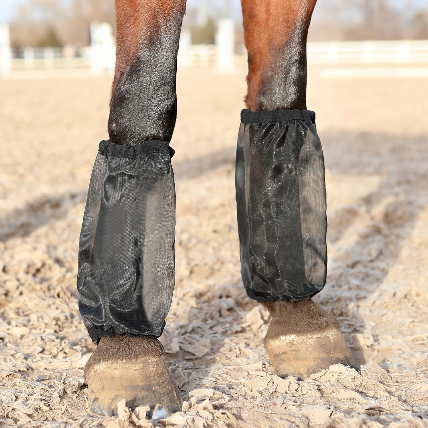 Equine Protective Mesh Leggings & Fly Boots Breathable UV Protection, Non-Slip Fit, Set of 4 (Black)