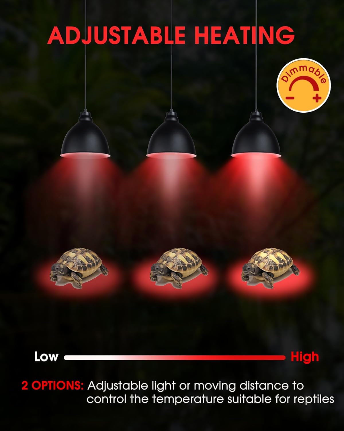 【24-Hour Heating Infrared Heat Lamp Bulbs】This reptile heat bulb emits a pleasant red light that helps maintain the temperature while remaining dim at night.The infrared heat emitter ensures your pets receives sufficient heat they need without disrupting their natural night cycle.