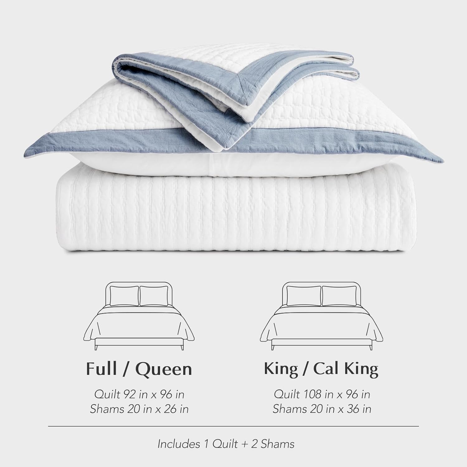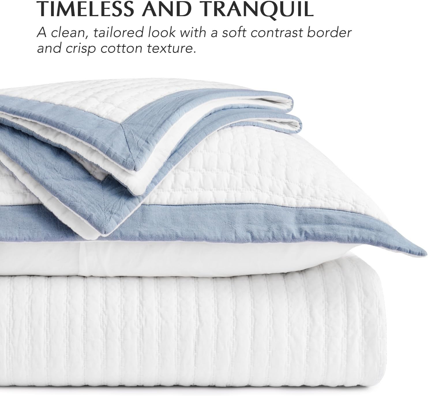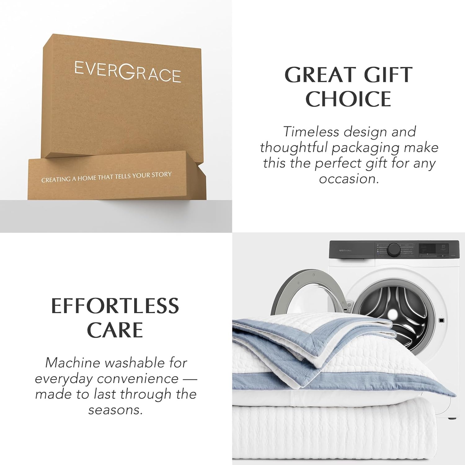 8 reviews for EVERGRACE Cotton Border Frame Tack-Stitch Quilt Bedding Set King Size, Coastal Oversized 3 Pieces Lightweight Bedspread Coverlet for All Season, with 2 Matching Shams, Blue Linen