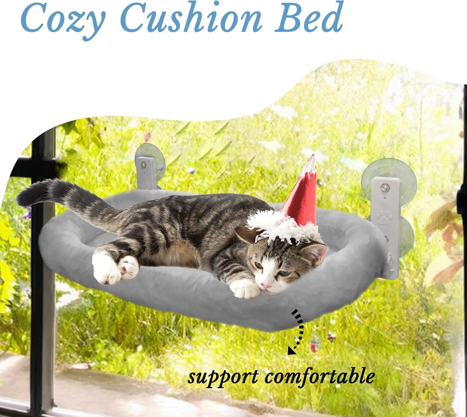8 reviews for Extra Large Cat Window Perch (23.8×11.8in) – Washable 2-Season Fabric Cover, 4 Strong Suction Cups, Solid Metal Frame – Foldable Cat Hammock for Large Cats/2 Cats, Cordless Design (Grey)