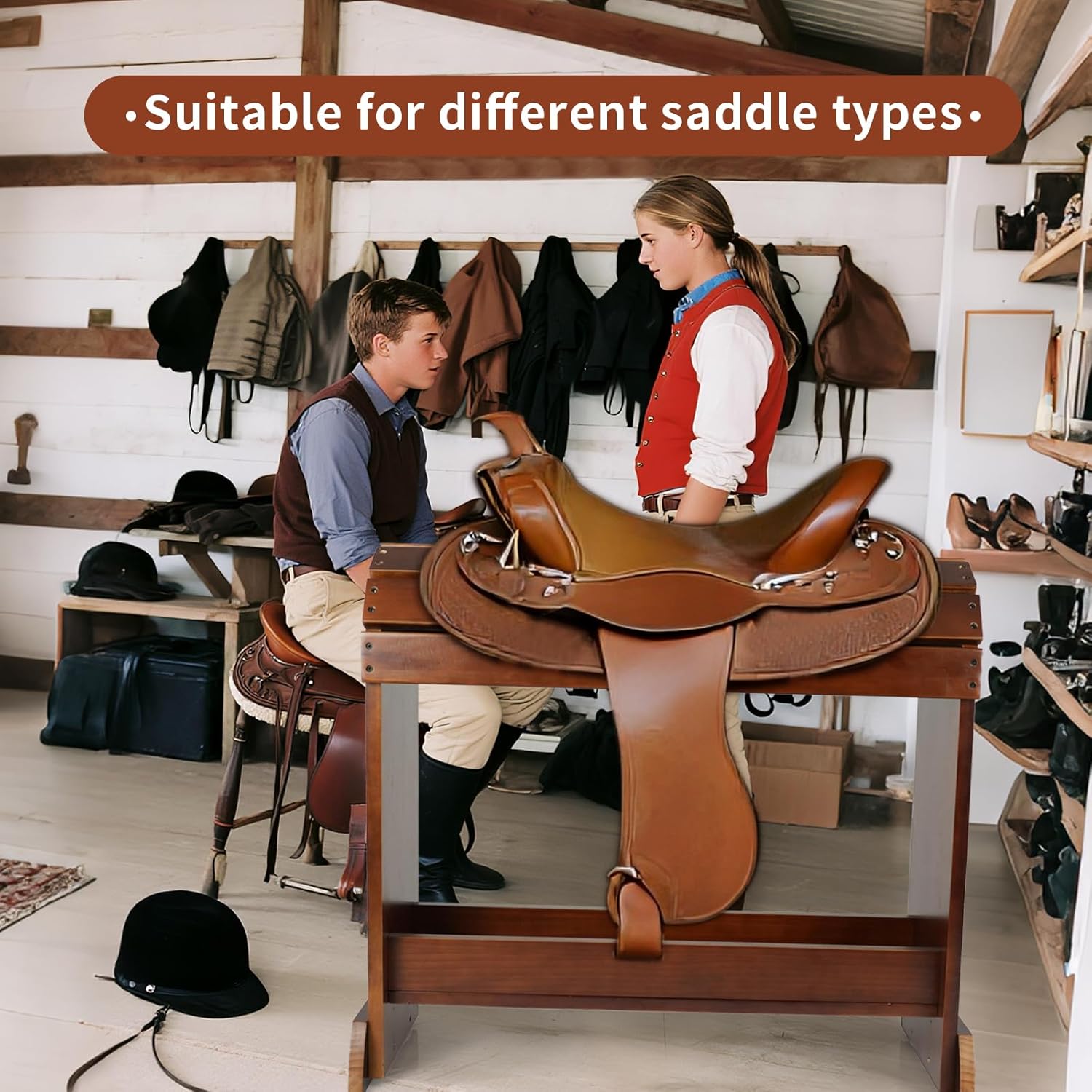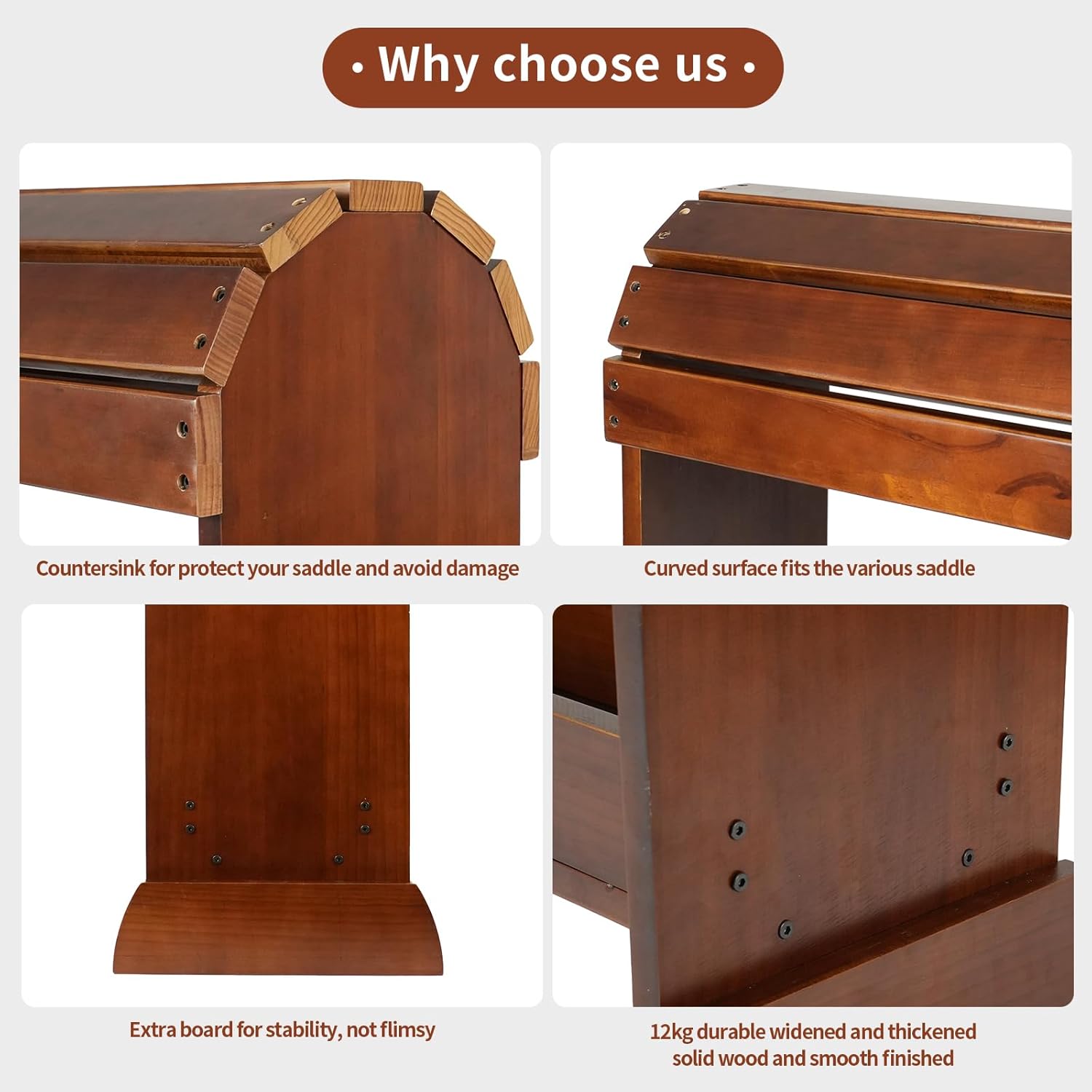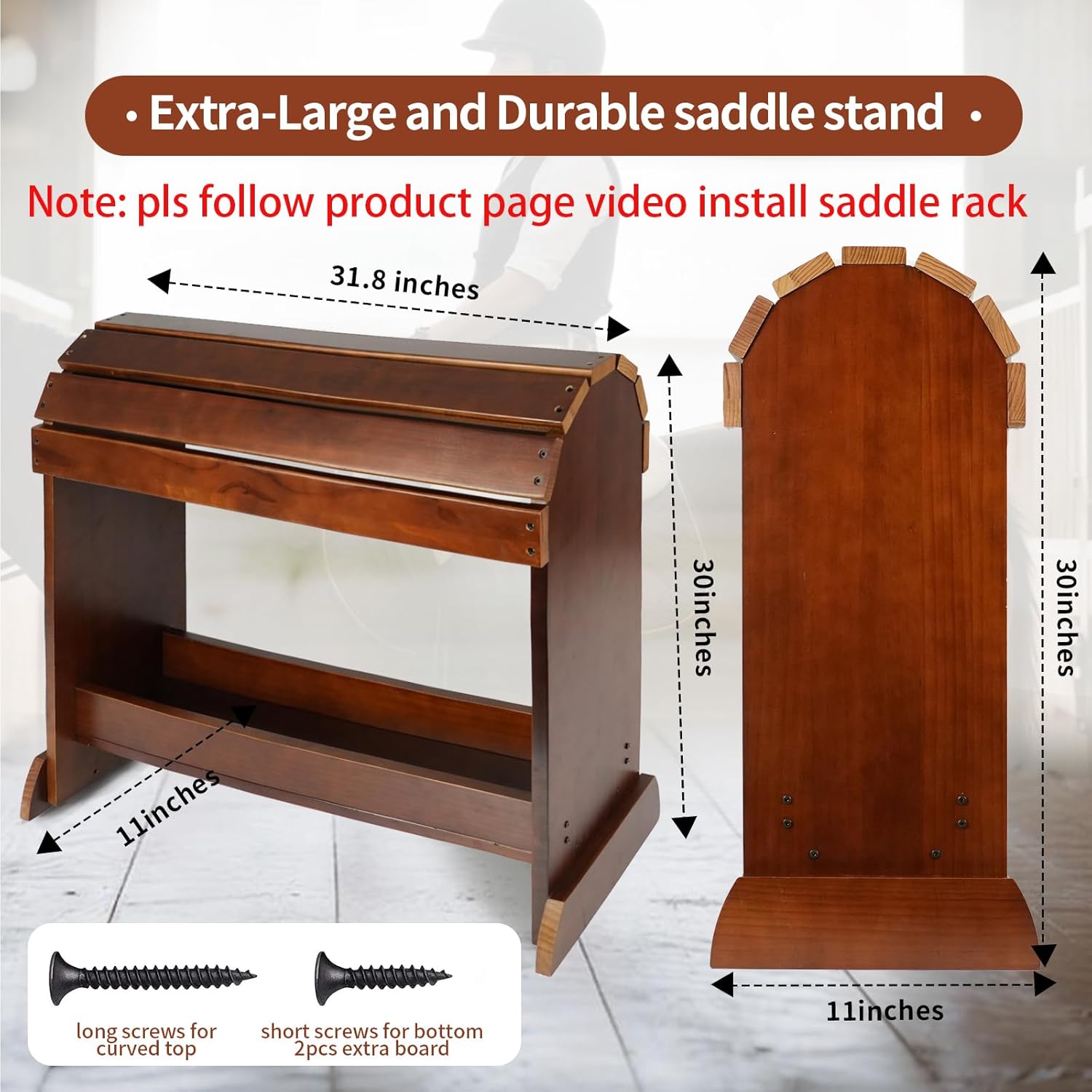 【Larger Size】Pine wood saddle rack size is 31.8*11*30inches, this large size perfectly accommodates bulkier western saddles and heavy saddle, taller saddle rack allows it to fit a wider variety of saddle styles