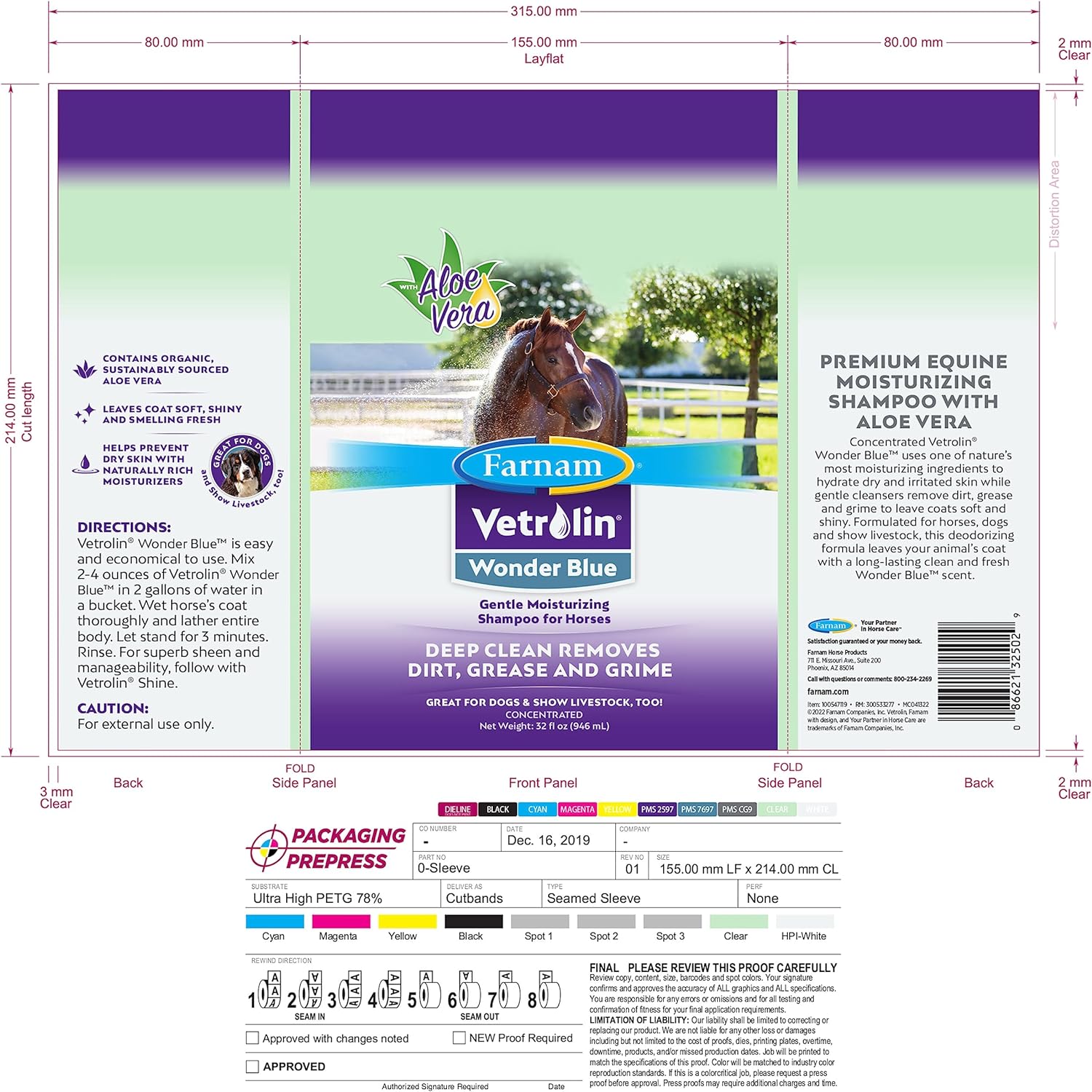 Farnam Vetrolin Wonder Blue Gentle Moisturizing Shampoo for Horses, Livestock and Dogs Blue 32
