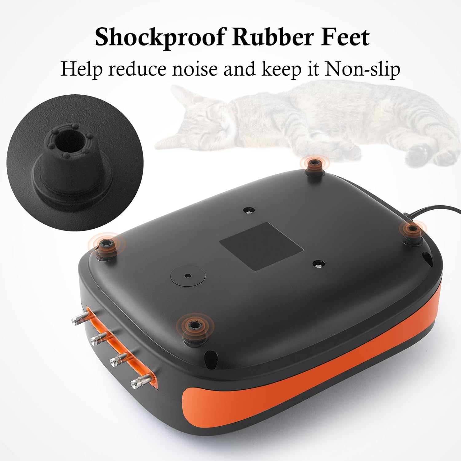 【Powerful Pump】4 outlets fish tank air pump, super large air volume for up to 300 gallon tank, the max pressure is 20Kpa, the max air volume is 256GPH(4*4L/min), the power cable length is 4.4FT, easy and convenient to use, can be used for larger fish tanks, aquariums, hydroponics and small ponds.