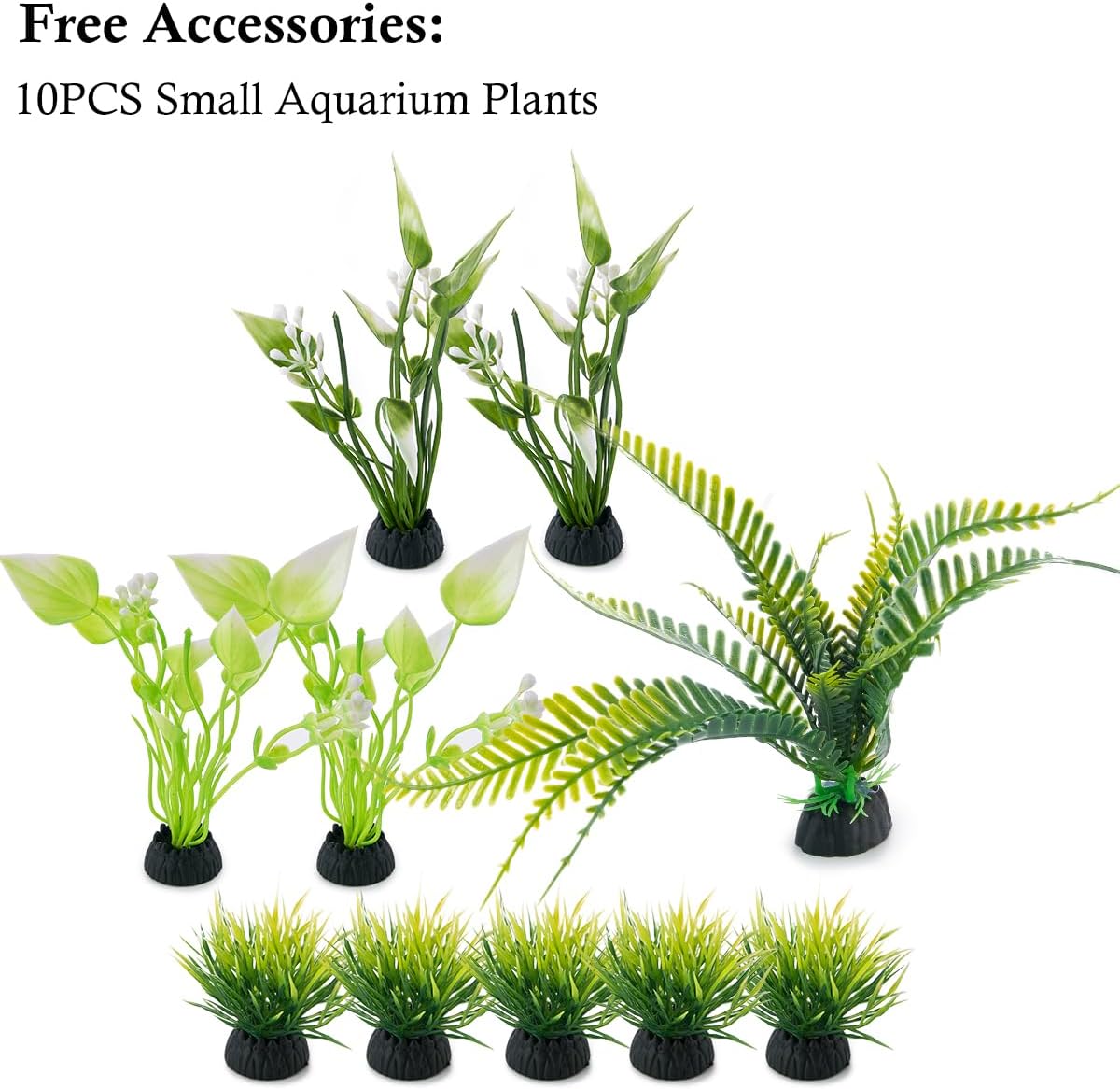 [Compact Size] Size: 5.7*5.7*5in(14.5*14.5*13cm) Suitable for small and middle fish tank higher than 7.8in(20cm). Comes with 10pcs small aquarium plants.