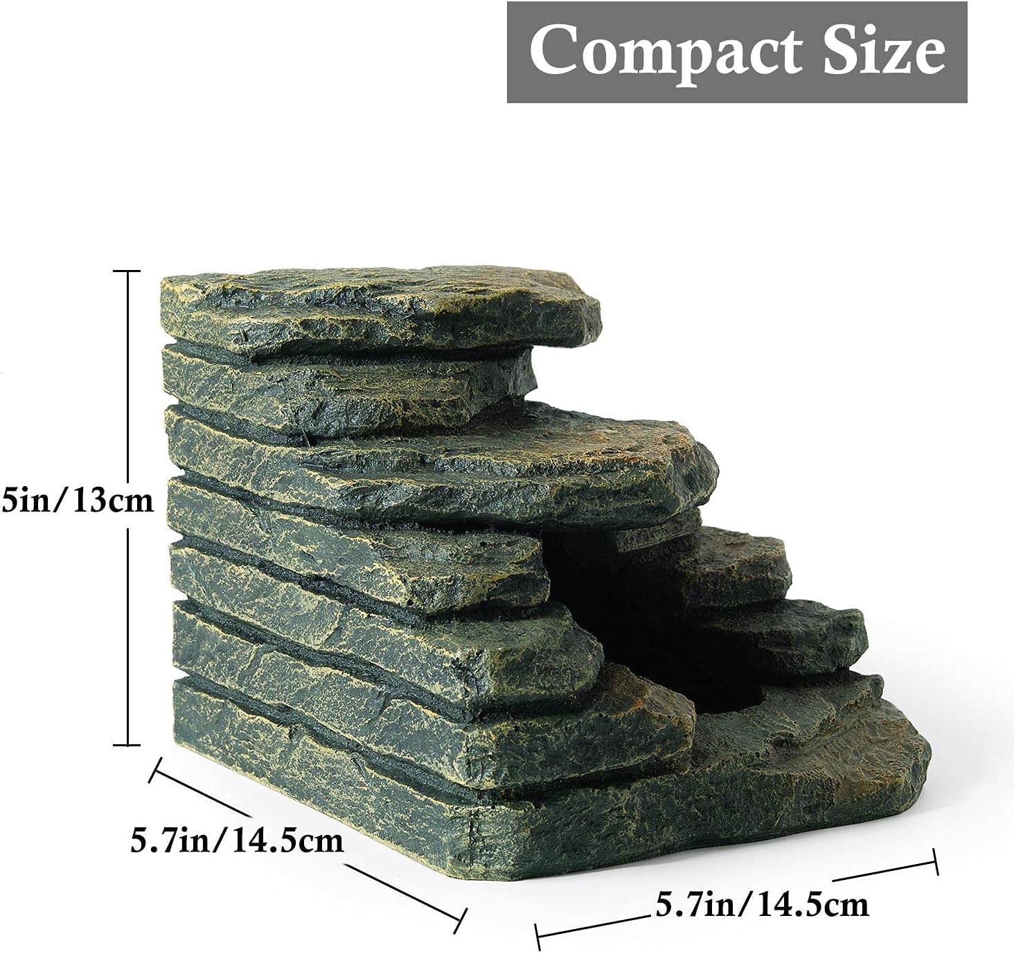 [Interesting and Multi-purpose] This aquarium decoration is very durable and full of fun. The cave can provide a place for fish to hide, shuttle and rest. The stone is a stepped design, which can be used by turtles, lizards , spiders, geckos and other reptiles to play, climb and bask.