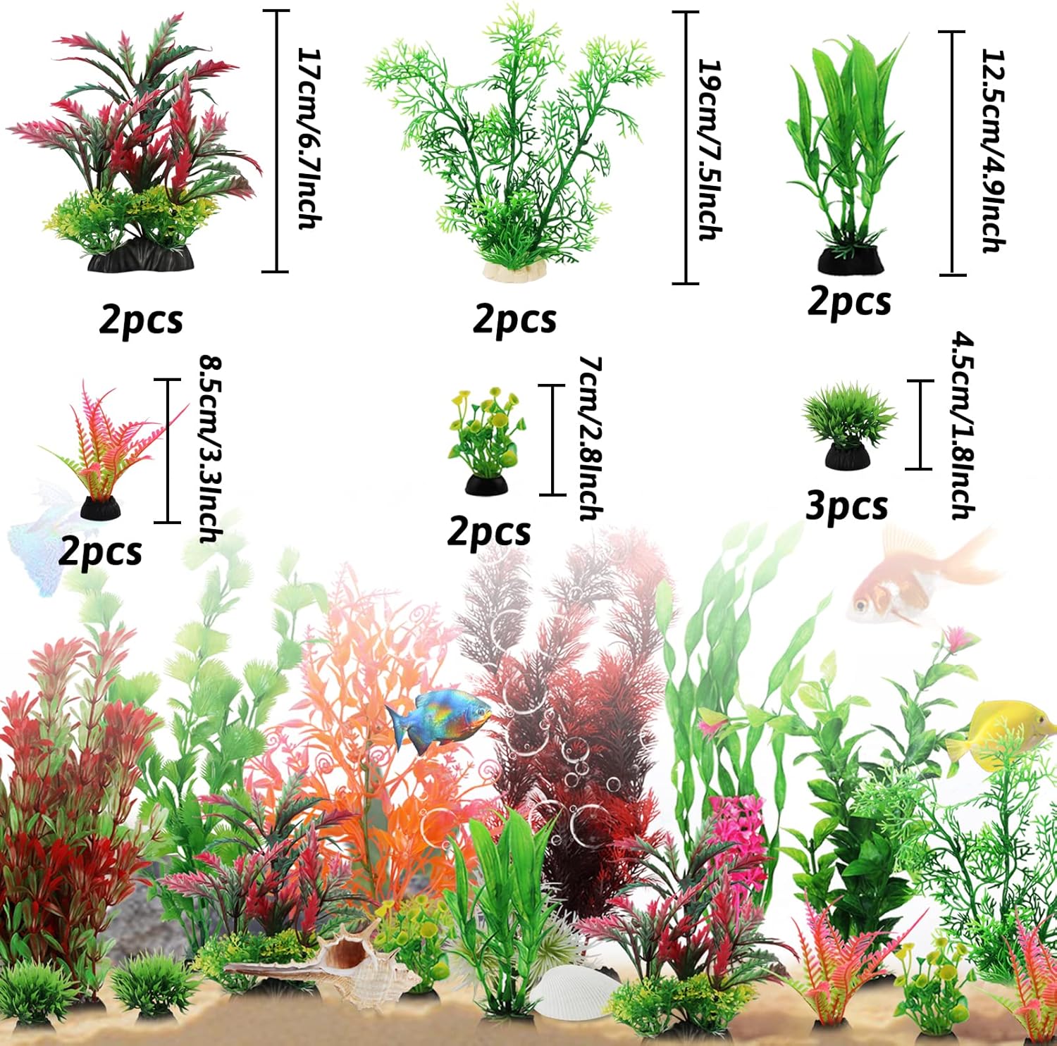Fish Tank Accessories Aquarium Decorations Plants, 20pcs Fish Tank Decorations Plant, Fish Tank Decor, Aquarium Decor Plastic Plants, Small to Large
