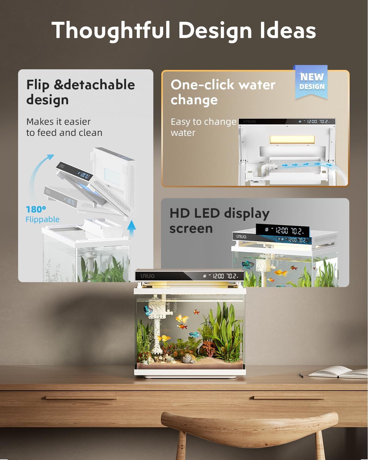Ultra-Quiet Pump: Operates under 35dB, ensuring 24/7 circulation without disturbing your work or sleep. It creates a peaceful environment for your fish, allowing you to enjoy the beauty of your tank in a quiet setting