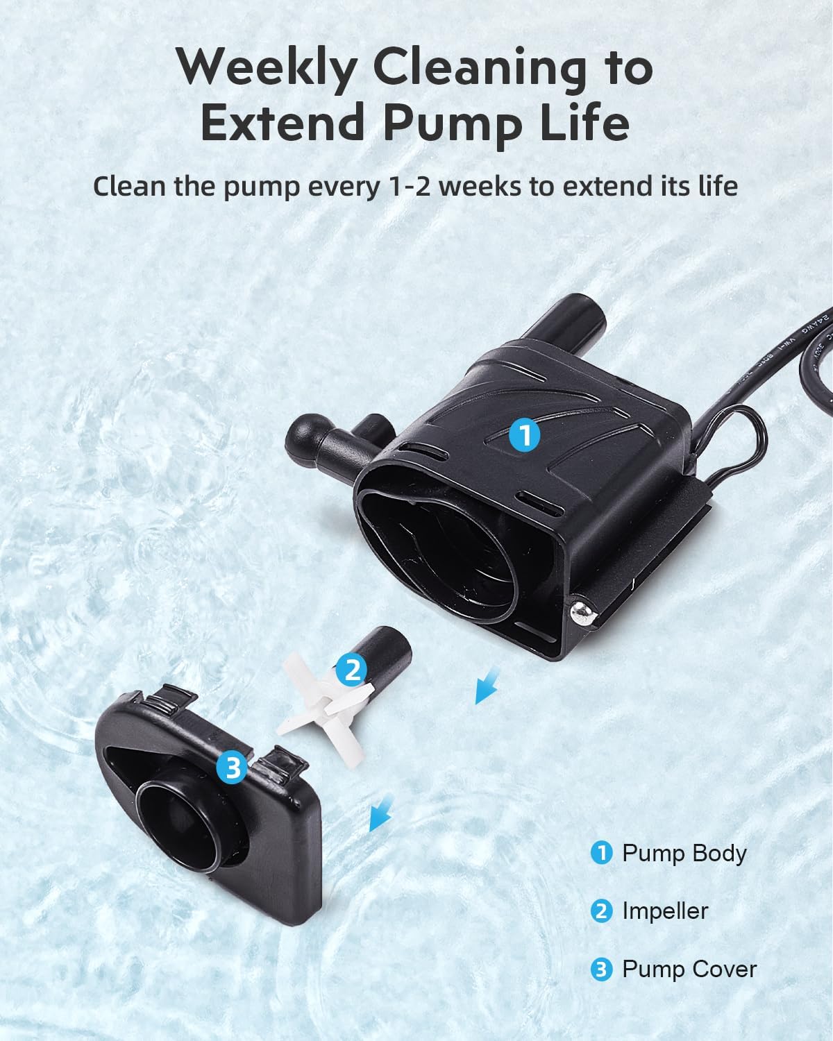 Pump Maintenance Tips: Aquarium pump scale buildup can reduce performance or damage the pump. For optimal operation, it is recommended to clean the pump every 1-2 weeks