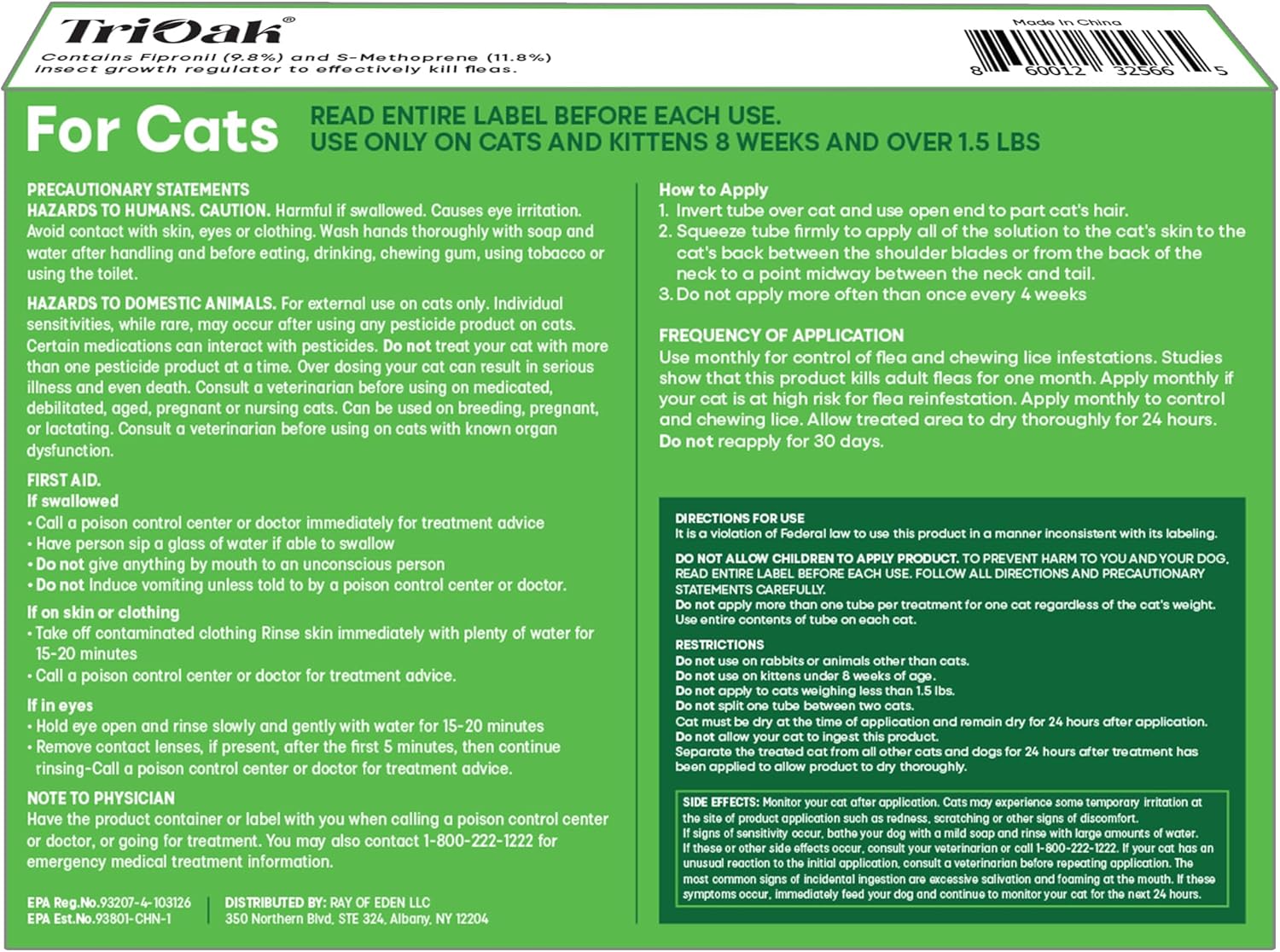 I have 3 cats and I really need this product. It is suitable for cats over 8 weeks old and over 1.5 lb, which is just right for my cats. It can quickly kill fleas, biting lice, and ticks. I have used it on my cats for 3 weeks and the effect is good. It is easy to use and has no odor.