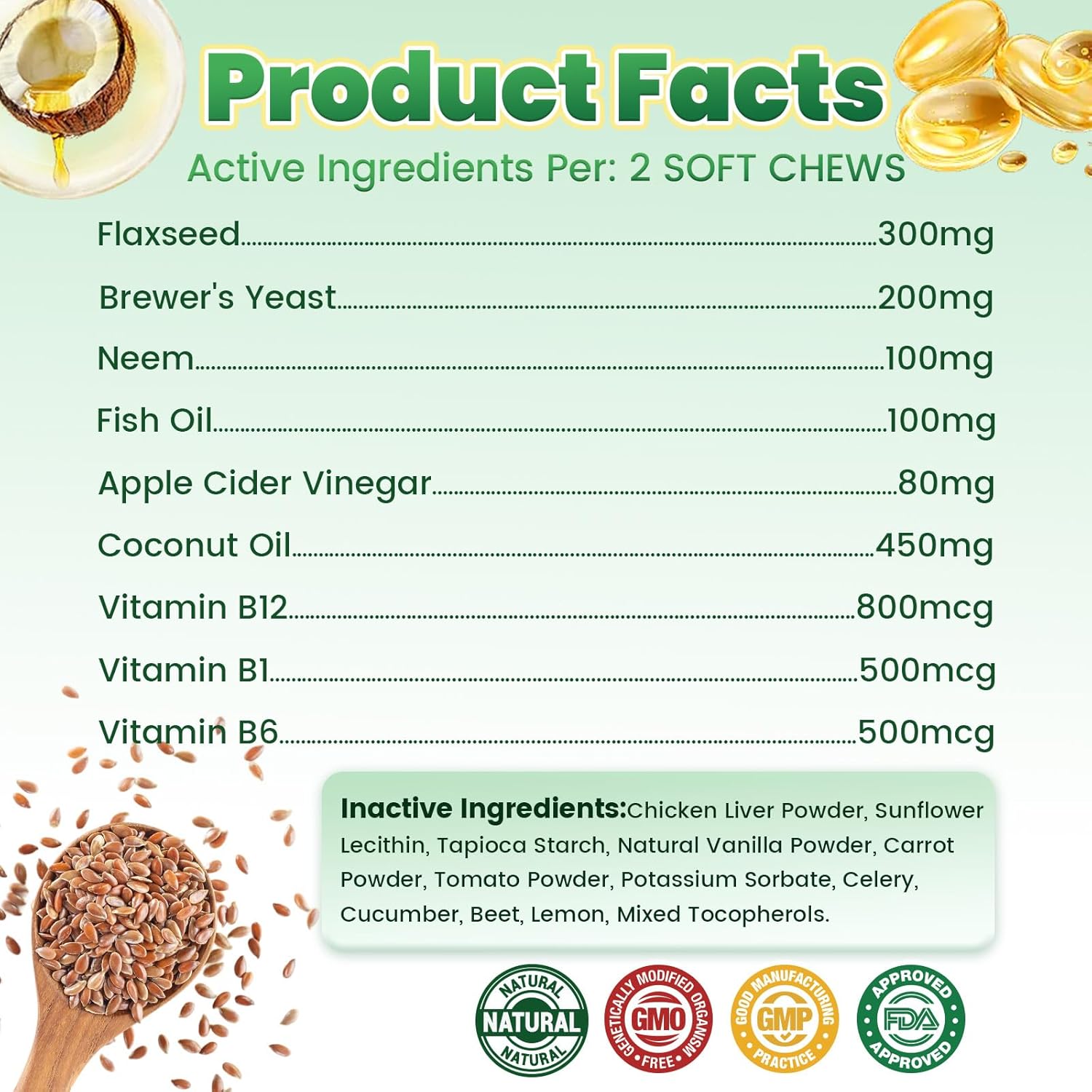 Gentle Natural Flea and Tick Support: Our natural soft chews are crafted from a blend of safe & natural ingredients such as Coconut oil, Flaxseed, Brewers yeast, Apple cider vinegar etc. No harsh chemicals, it offers a gentle & safe way to support fleas and ticks for your puppies or senior dogs.