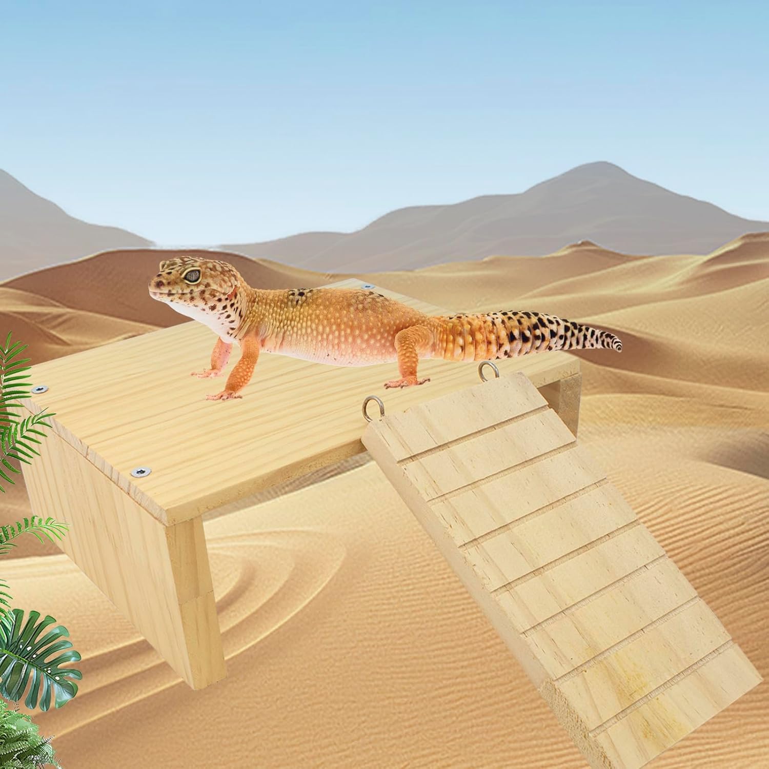 Reptile Platform With Ladder: Our bearded dragon platform with climbing ladder can reduces boredom, but also helps relieve bad moods, the perfect reptile toy for hiding, resting, and playing.
