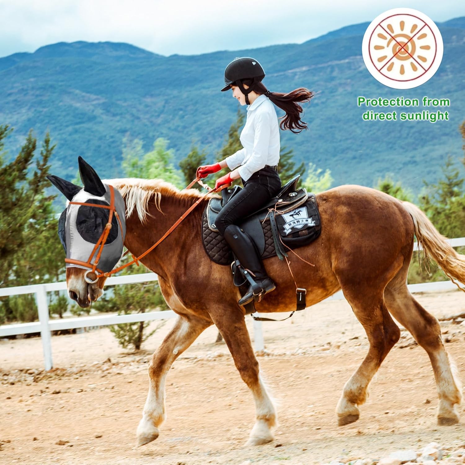 MESH CONSTRUCTION: Durable, breathable mesh material allows clear vision while effectively blocking flies, dust, and harmful UV rays from your horse’s face and eyes