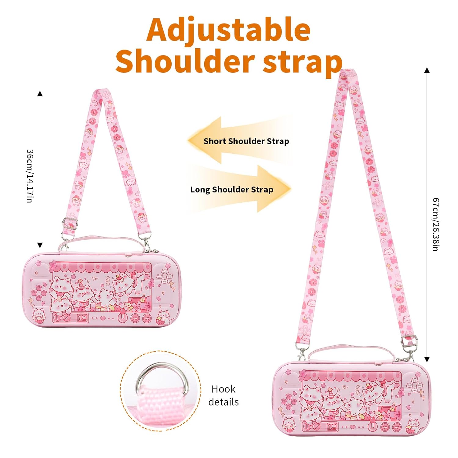 Cute Switch 2 Carrying Case, Kawaii Cat Travel Carry Case with Shoulder Strap