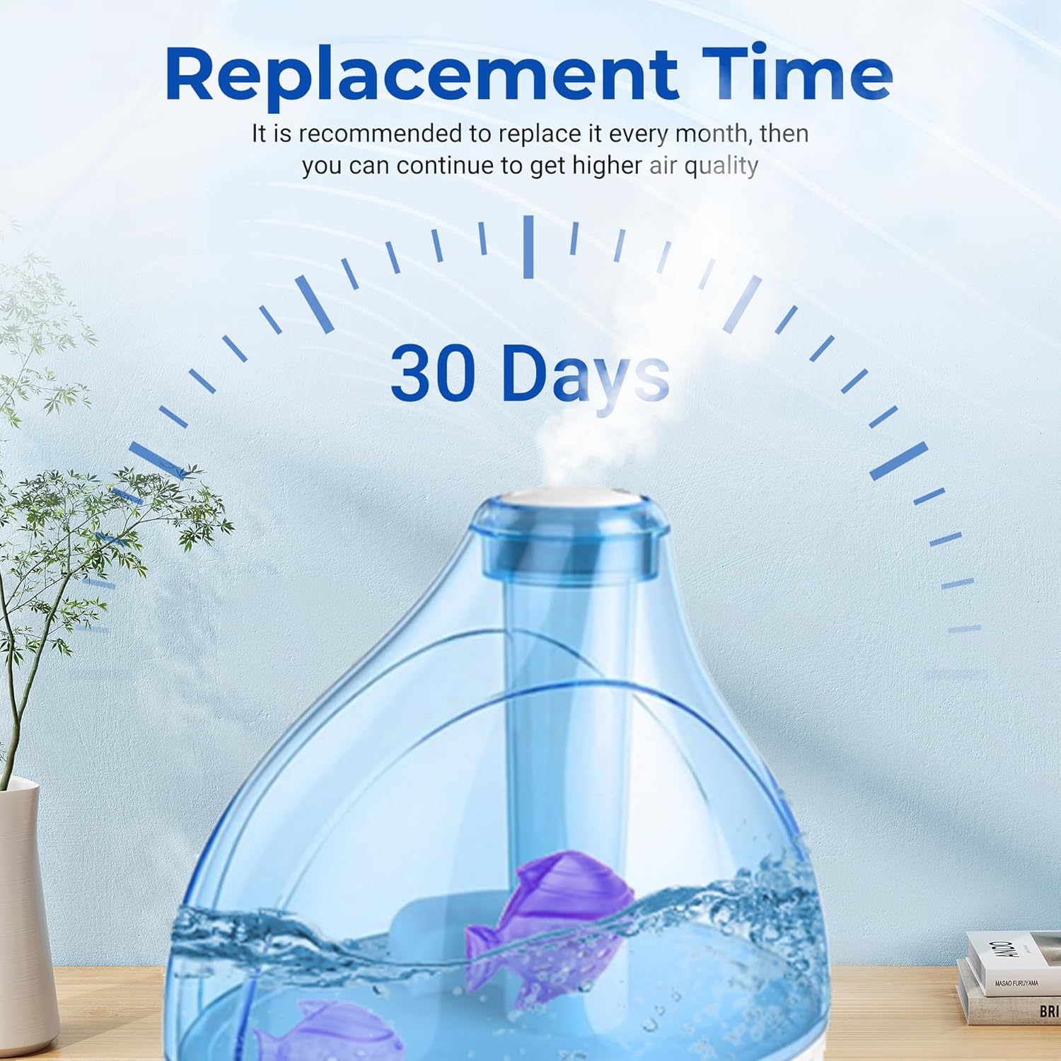𝗘𝗫𝗖𝗘𝗟𝗟𝗘𝗡𝗧 𝗣𝗘𝗥𝗙𝗢𝗥𝗠𝗔𝗡𝗖𝗘 – Enjoy moist air in winter with our humidifier cleaner fish to ease uncomfortable symptoms caused by dry air. Our advanced humidifier cleaning fish is equipped with silver ion filter balls, which can effectively reduce the magnesium and calcium that may be contained in hard water, and soften the hard water, thus inhibiting the growth of dirt as well as avoiding the buildup of slime in the water, extending the lifespan of the device