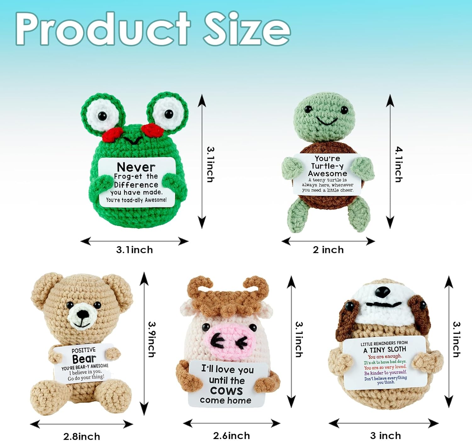 Funny 5 Pieces Mini Positive Crochet Animals,Graduation Gifts for Her Him 2025, Mental Health Emotional Cheer Up Support Positive Turtle Sloth Frog Moo Bear, Positive Gifts for Mom Graduation