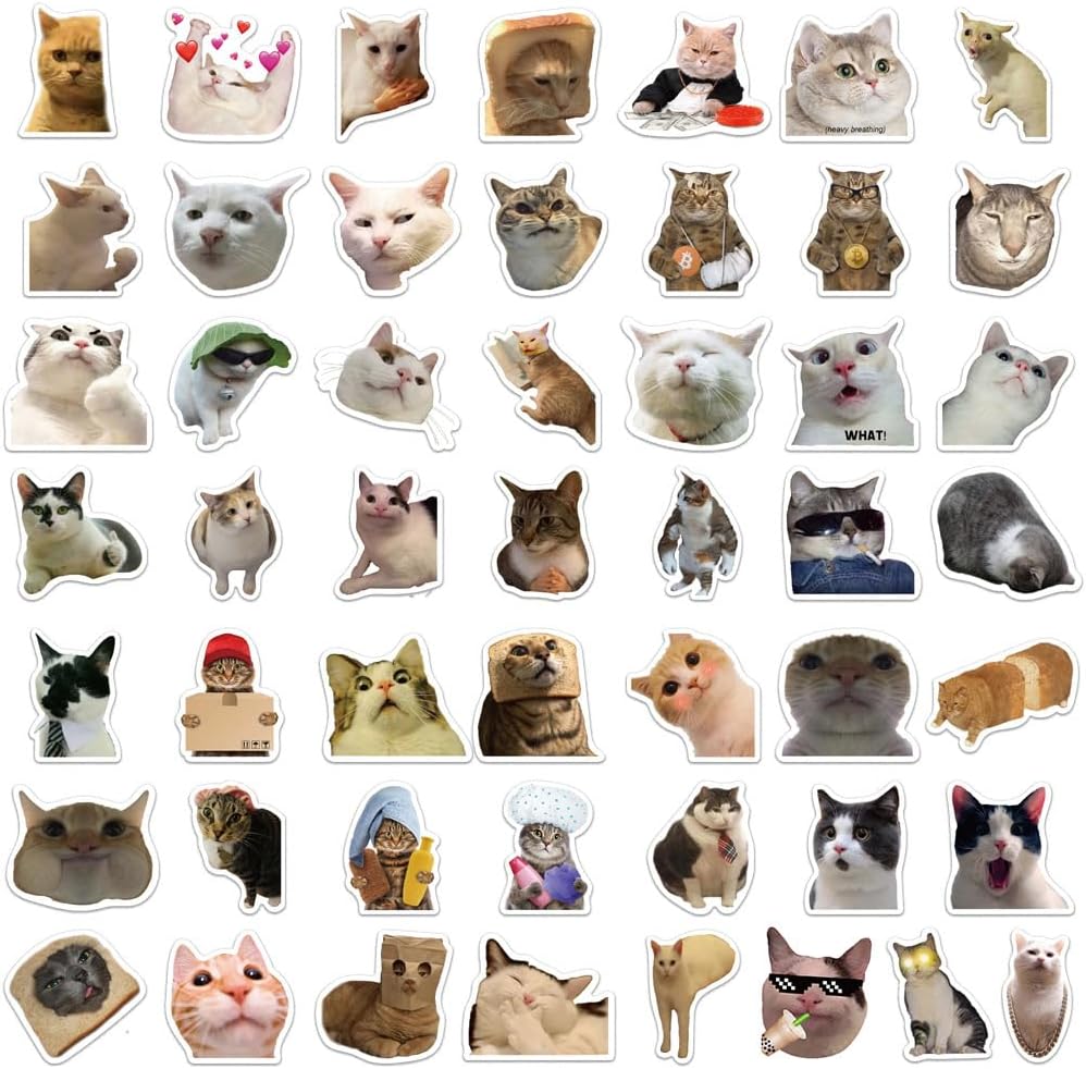 8 reviews for Funny Cat Meme Stickers for Adults, 50PCS Cute Cat Expression Waterproof Vinyl Stickers Pack for Water Bottle, Laptop, Scrapbook, Luggage, Pet Animals Decals, Party Supplies (A)