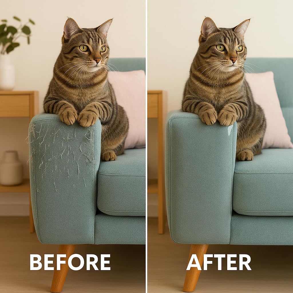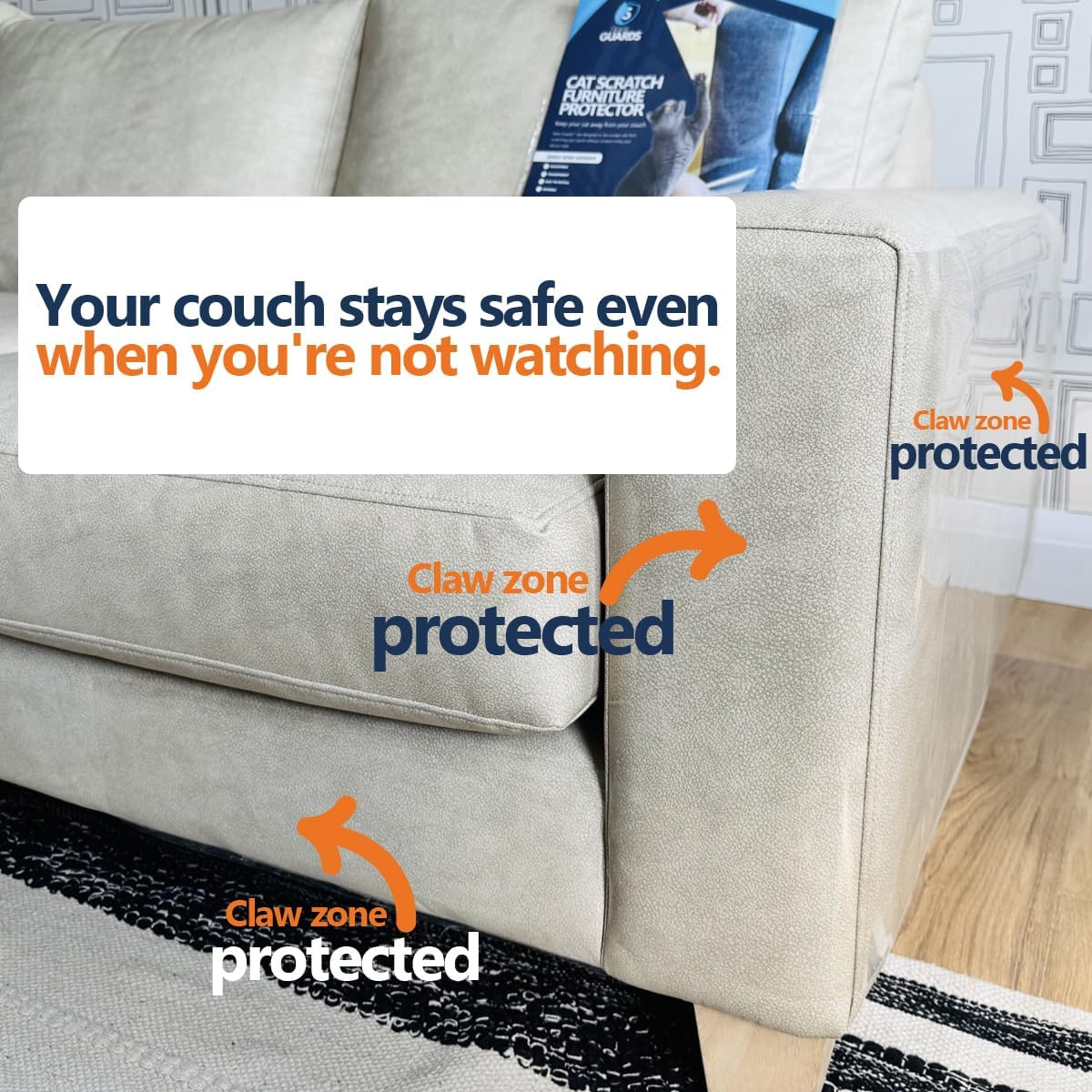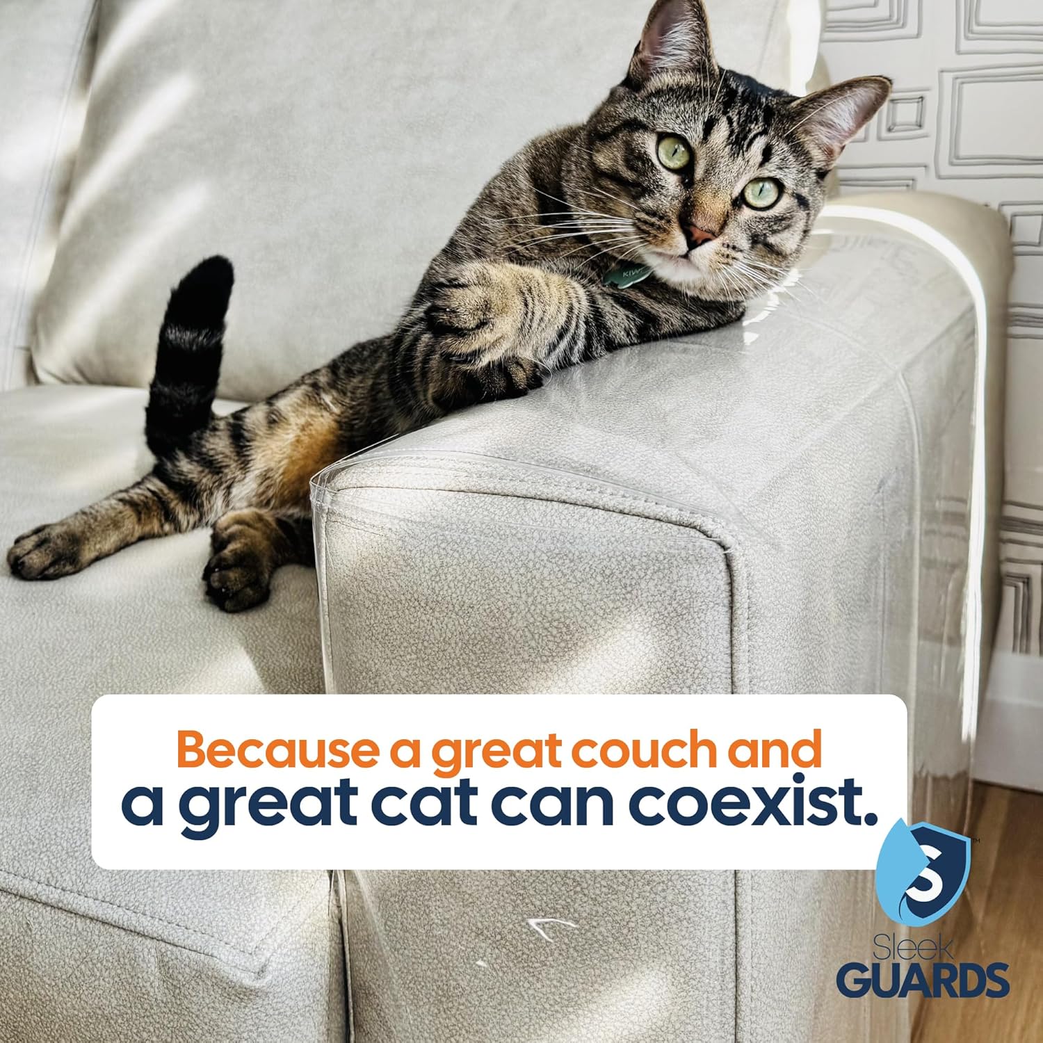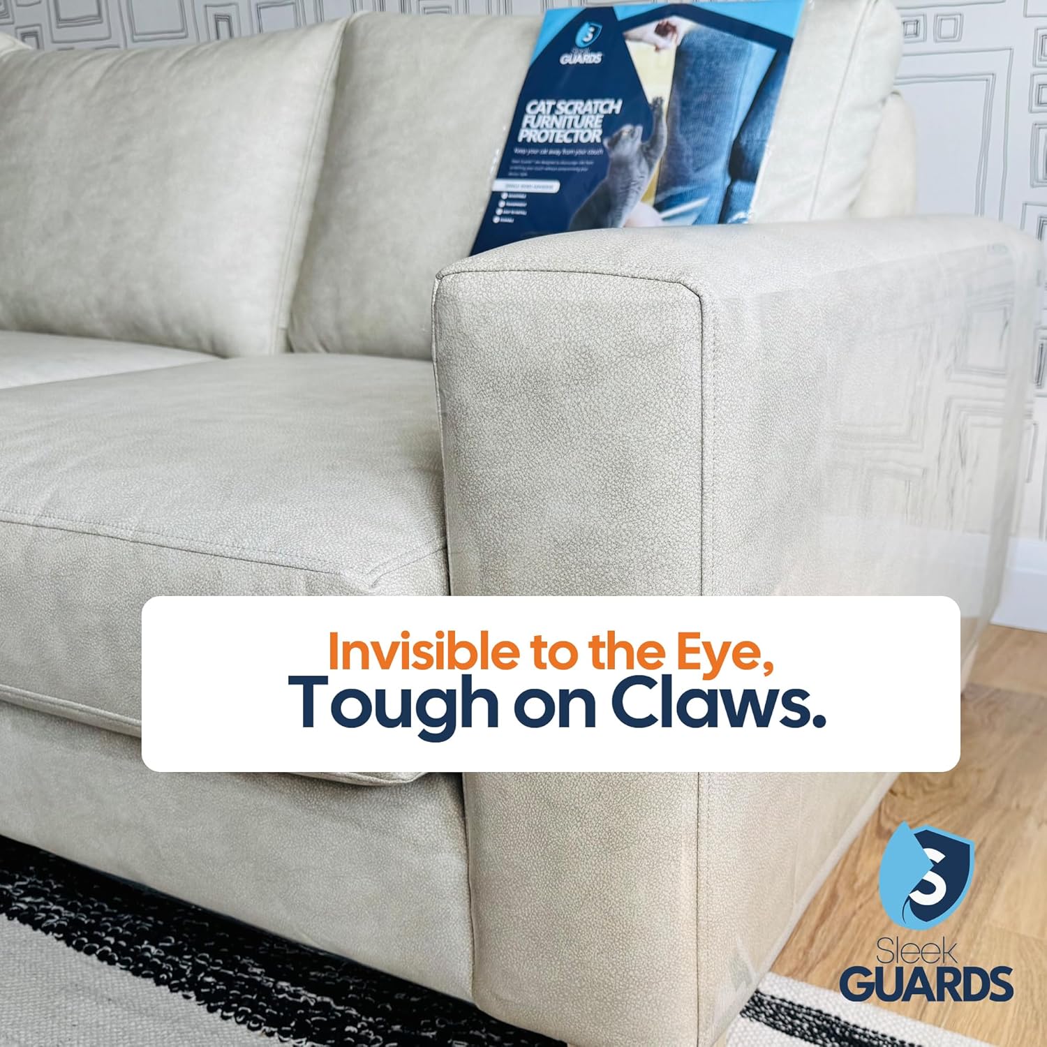 SLEEK GUARDS STRATEGY: Sleek Guards is more than a cat scratch furniture protector, it’s a behavior training system. Our anti-scratch adhesive sheets make couch armrests unappealing to your cat, acting as a powerful cat scratch deterrent for furniture. At the same time, we guide their natural instinct to approved areas like a cat tree, cat scratcher, or cardboard scratch pad. This dual approach protects your sofa, couch corners, and fabric surfaces while keeping your cat happy and stress-free. It’s an effective solution for cat-proofing your furniture, no more shredded couches, just peace of mind.
