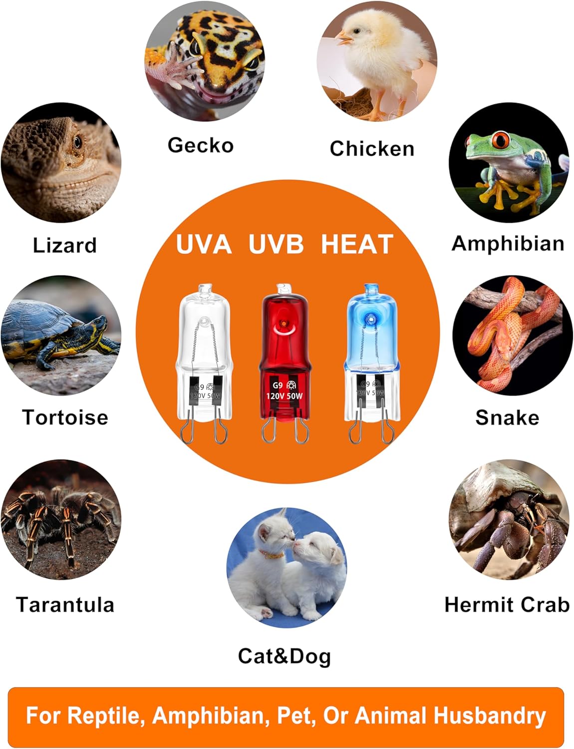 【Basking Light】Output yellowish Color light. This heat bulb outputs natural light and heat for animals as if they would enjoy in the wild, to maintain and promote animal health.