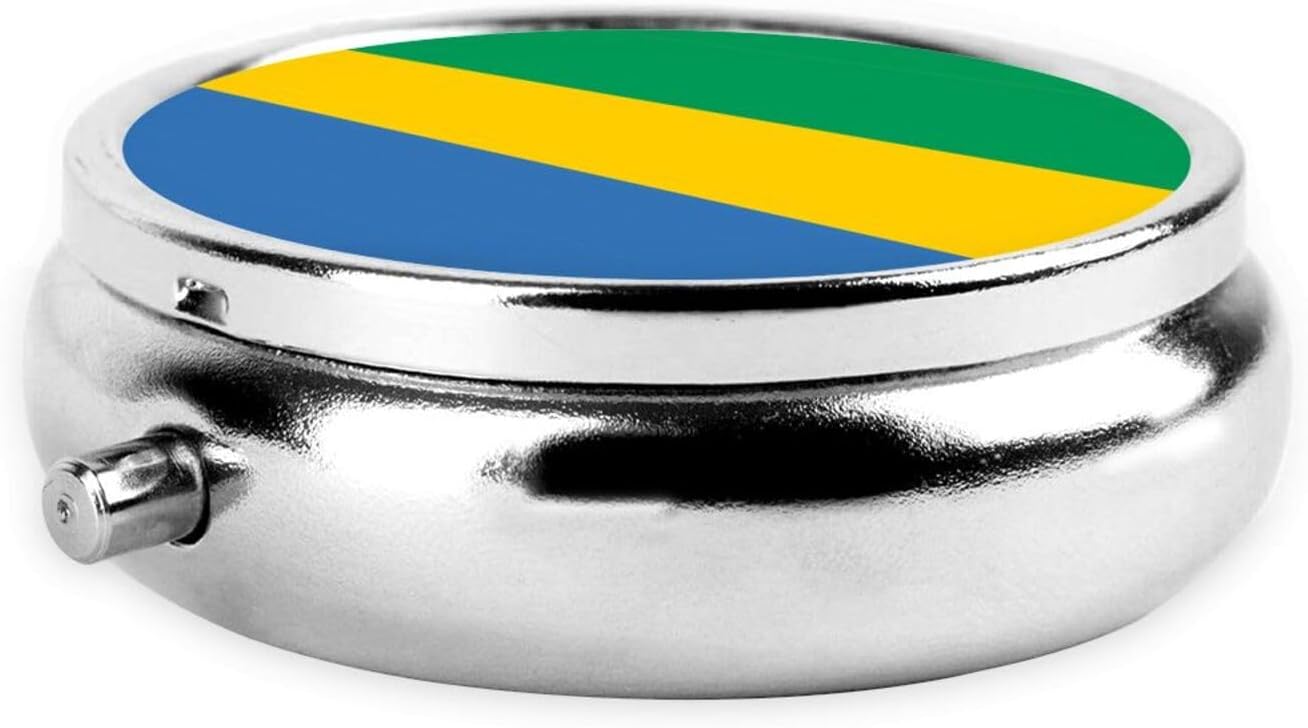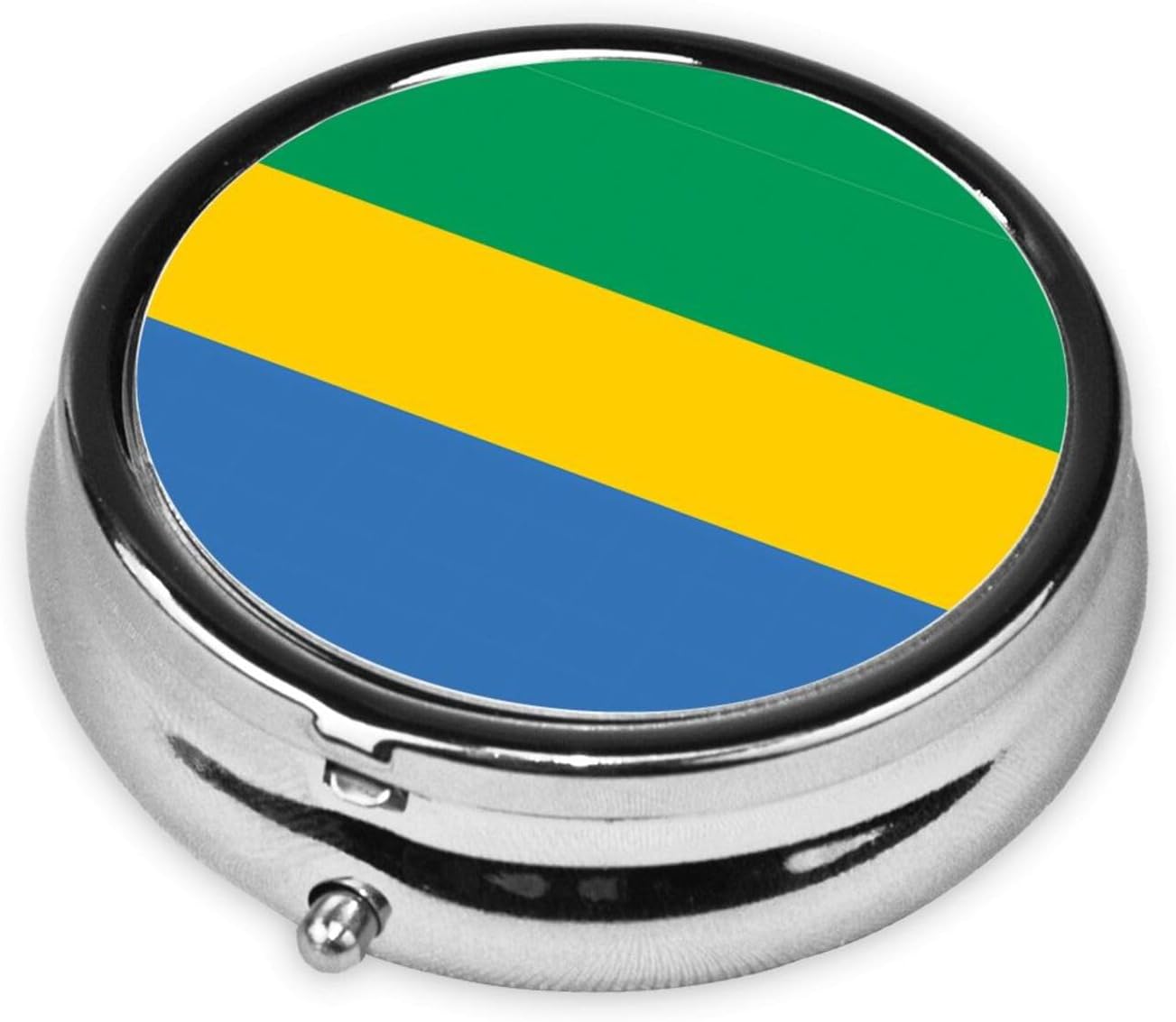 Gabonese Flag Round Pill Box – Portable Medicine Storage Container for Vitamins, Supplements, Fish Oil, etc.
